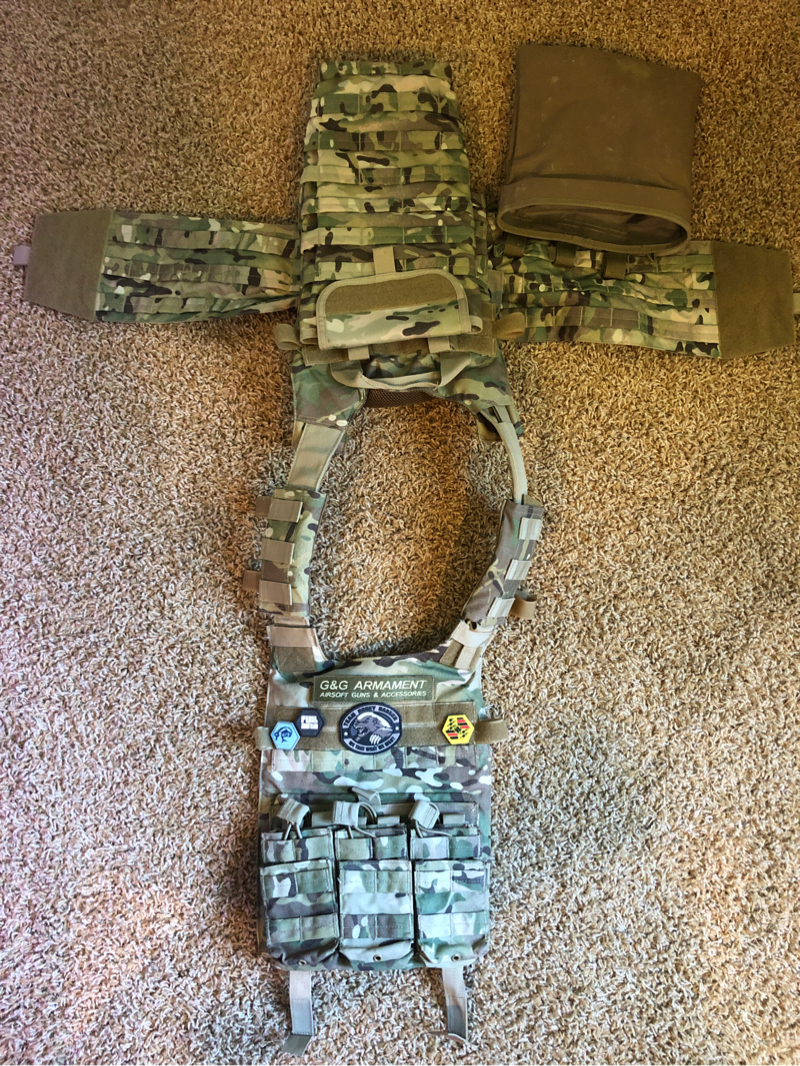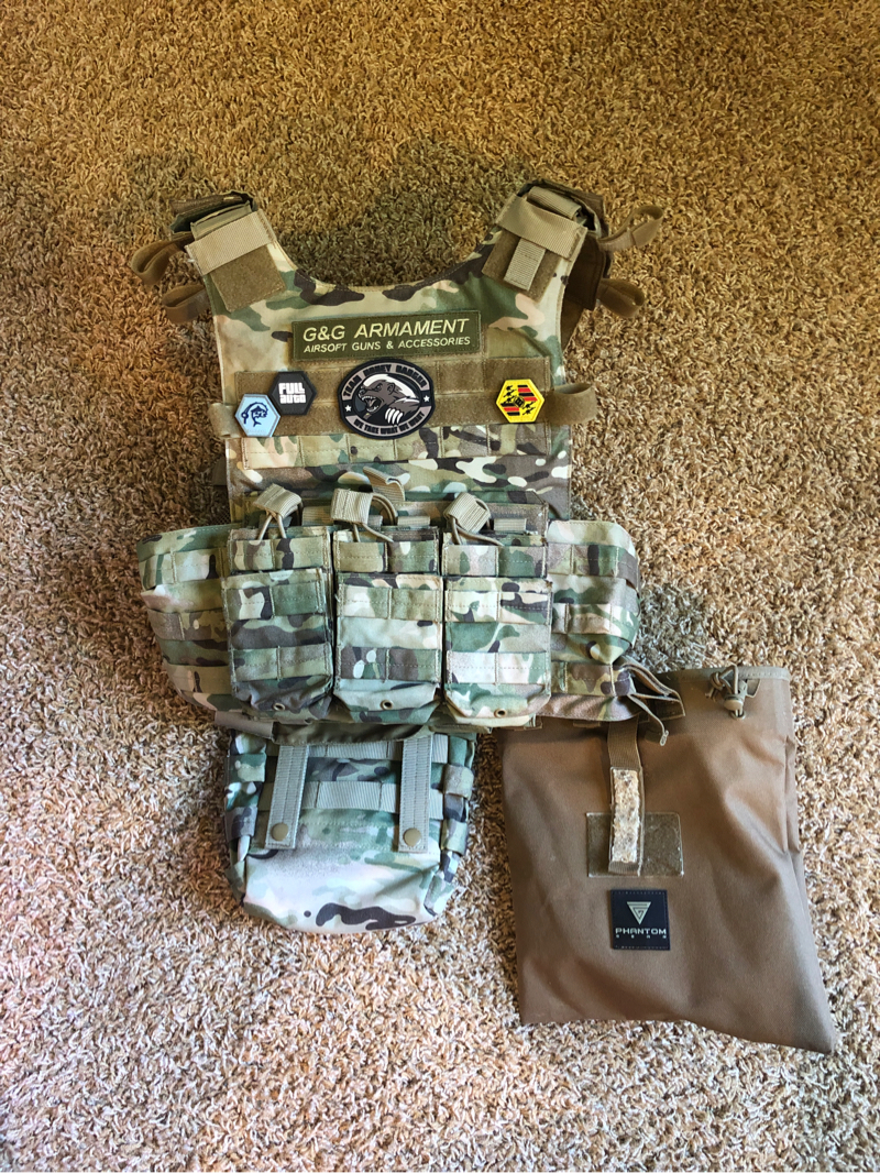 (Plus shipping fees) Condor gunner vest with double mag pouches, dump pouch, and hydration carrier/air tank carrier; comes with free patches