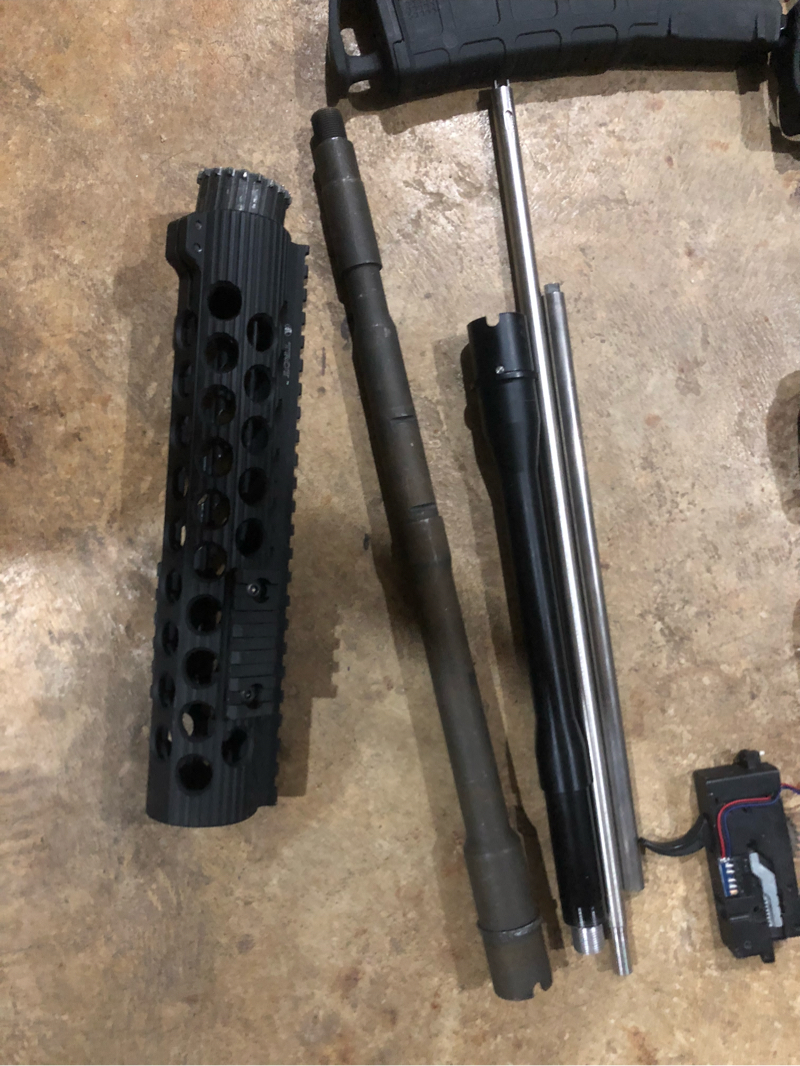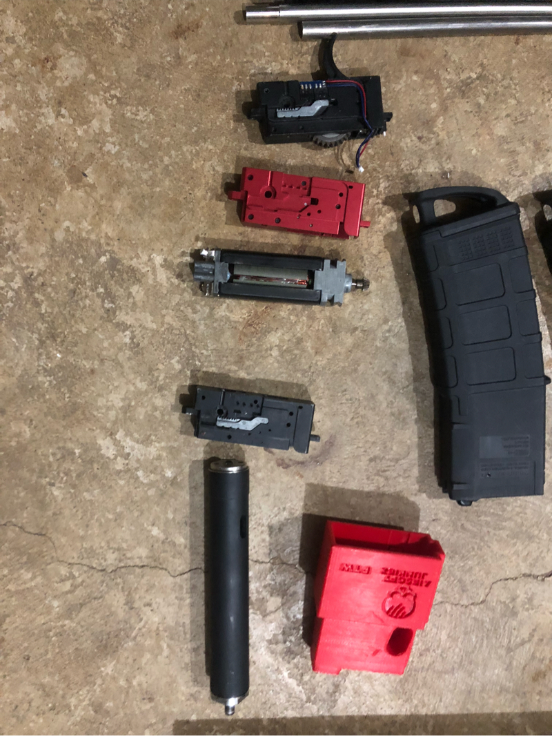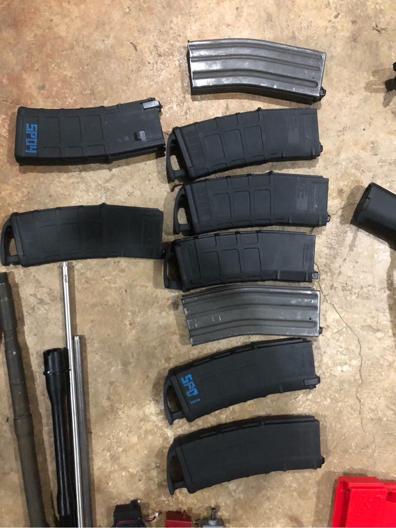 Ok have a mega arms ptw. Has fcc gear box, etiny electronics, and stock systema hop up barrel and motor. Have 7 pmag(4 zshot 3 unknow brands) 2 parts mags. Some outer and inner barrels. And some odd and end stuff will trade.