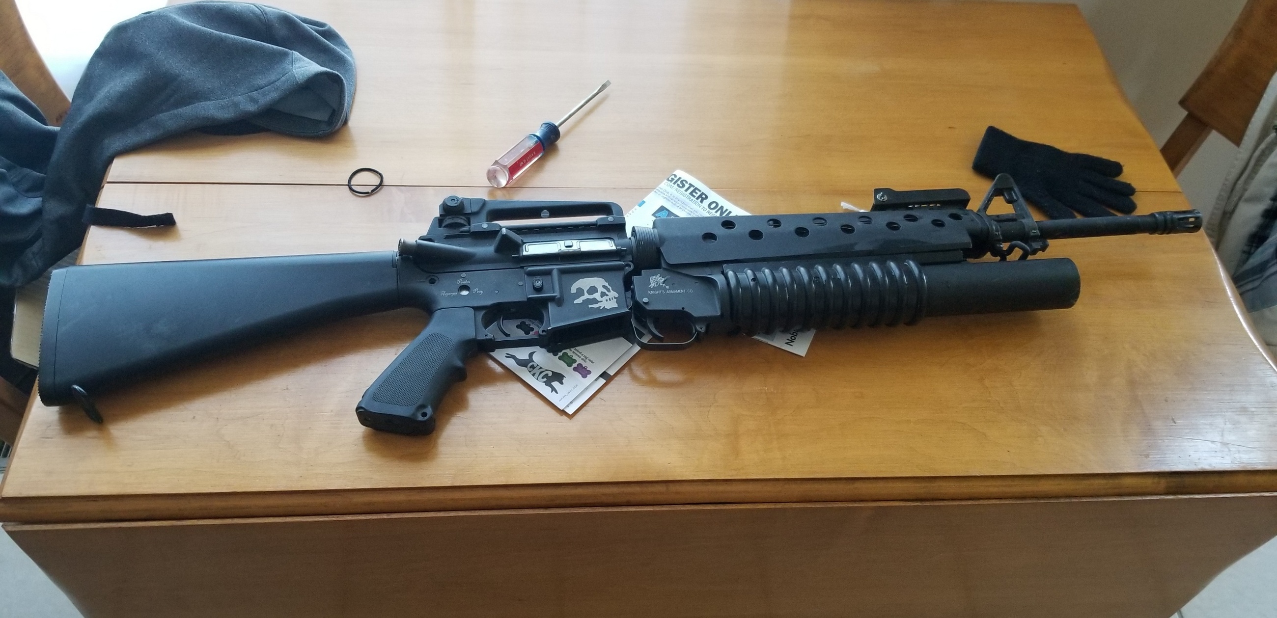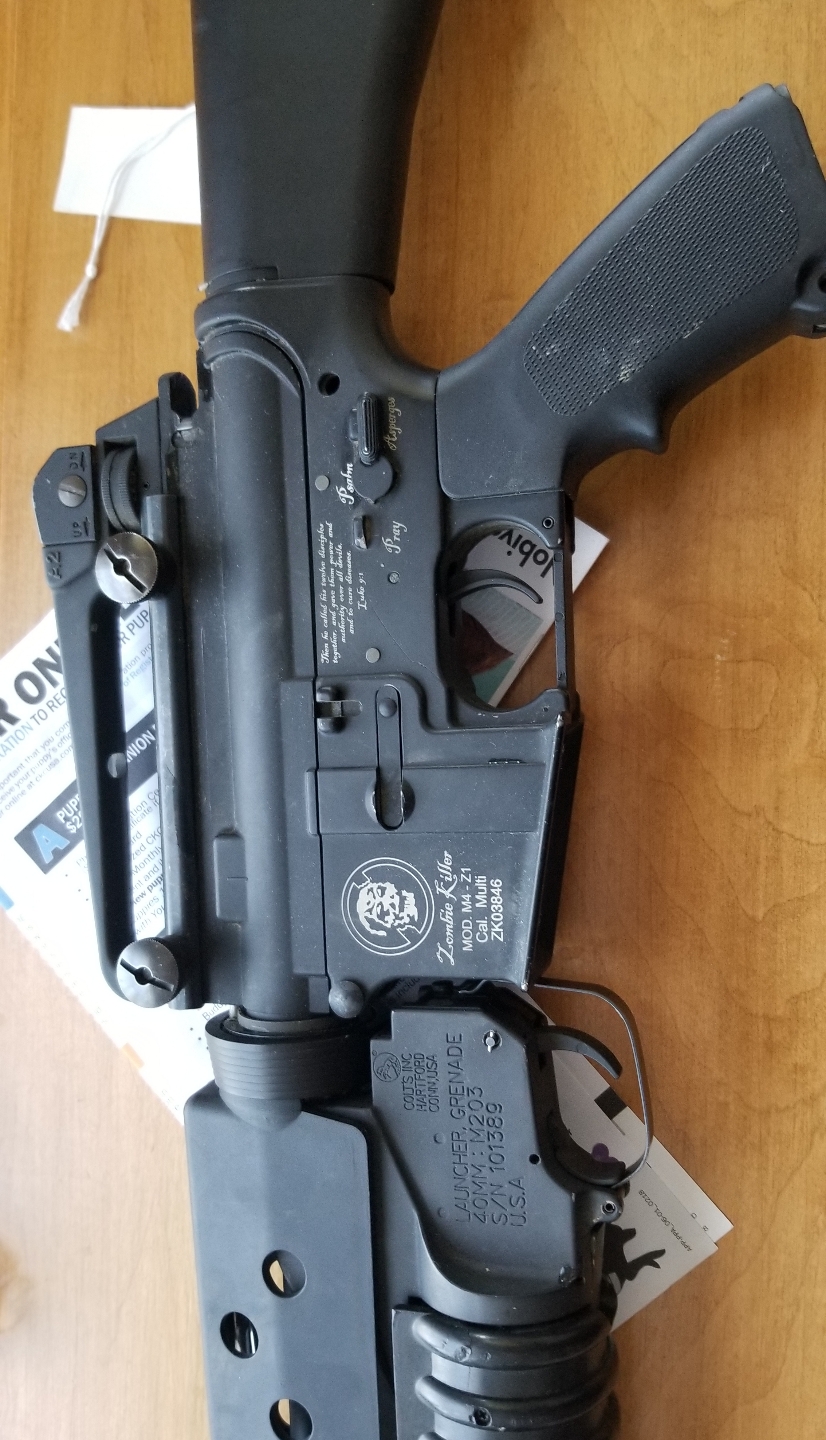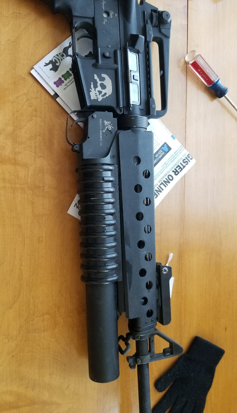 Up for sale is a G&P "Scarface" M16. Gun is in decent shape, and is a great shooter! It is missing the charging handle and the cover for the left hand selector port, but the rest of the gun is in perfect condition. The 203 is a fun surprise. I only recommend using a 7.4v or 9.6v battery with it, as the old G&P gearboxes don't enjoy 11.1v batteries. Only trades considered on this one are new run Classic Army M4 platforms, or a New Run CA M16A1. Thanks for looking! Price doesn't include shipping, but make me an offer!