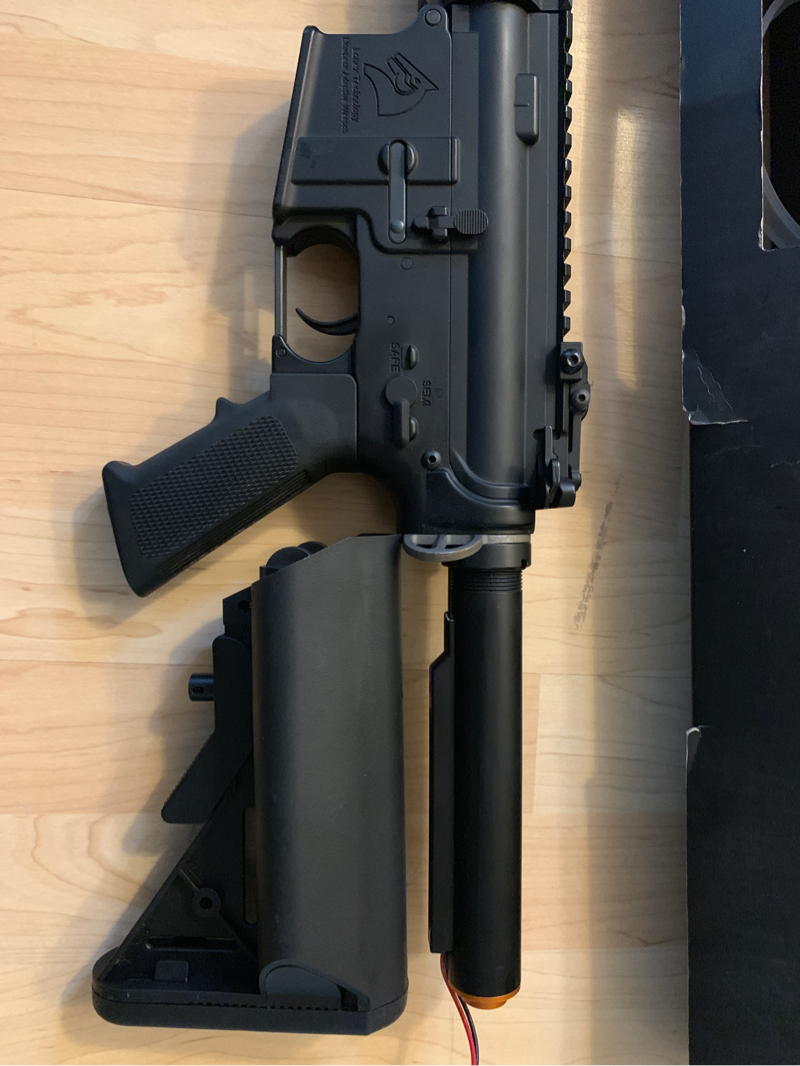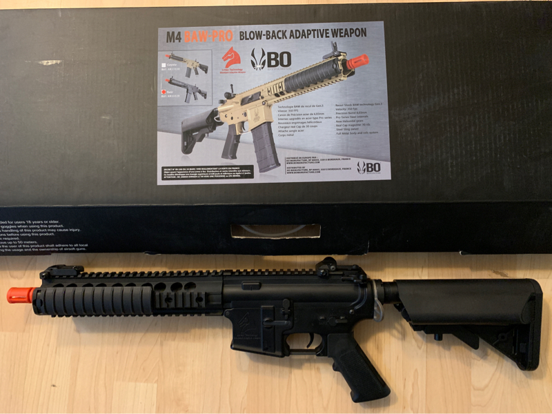 BO Dynamics Lonex Blowback Recoil AEG. You can remove the recoil part and use it as a non blowback recoil. It has decent kick and loud blowback recoil.