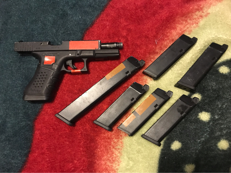 Prefer to trade this Glock 18c. Has threaded barrel and comfort shooters grip! Includes all mags in pic (all non leaky) Looking for: Hicapa Any Smg but I like MP5’s Nice M4 or gun that takes m4 mags Will take a DMR
