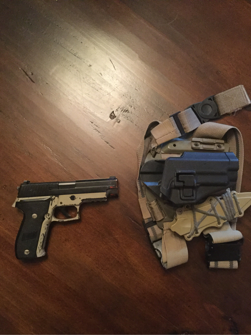 A KJW P226 with a holster (No mag)