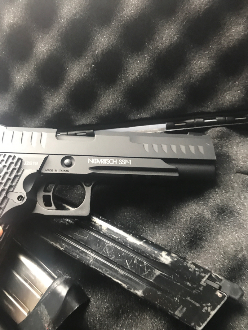 Ssp1 used 4 times Ssp1 mag green gas used 1 Hicapa silver mag Extended mag looks bad works really well and hpa tapped Ssp1 case