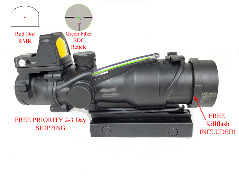 Real Green Fiber Illumination, comes with all shown + accessories (RMR tools, low mount, hood)