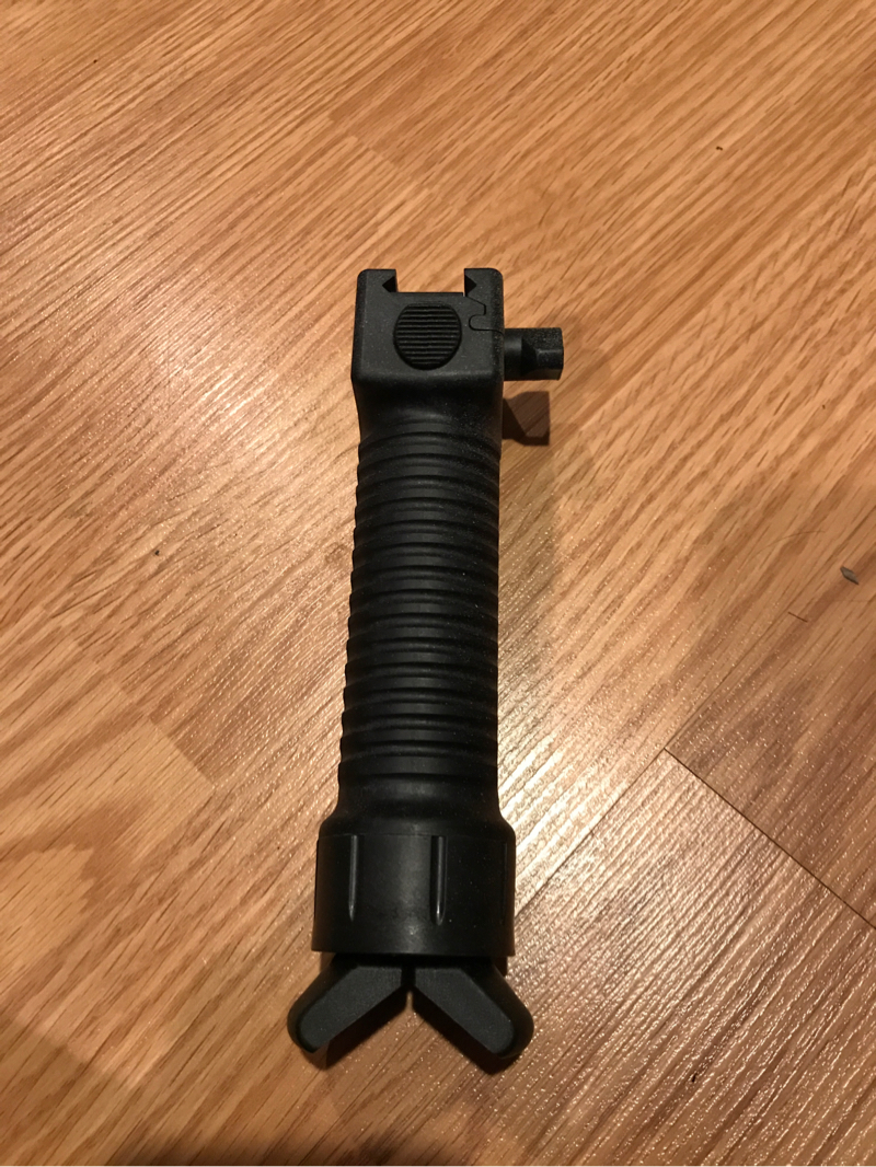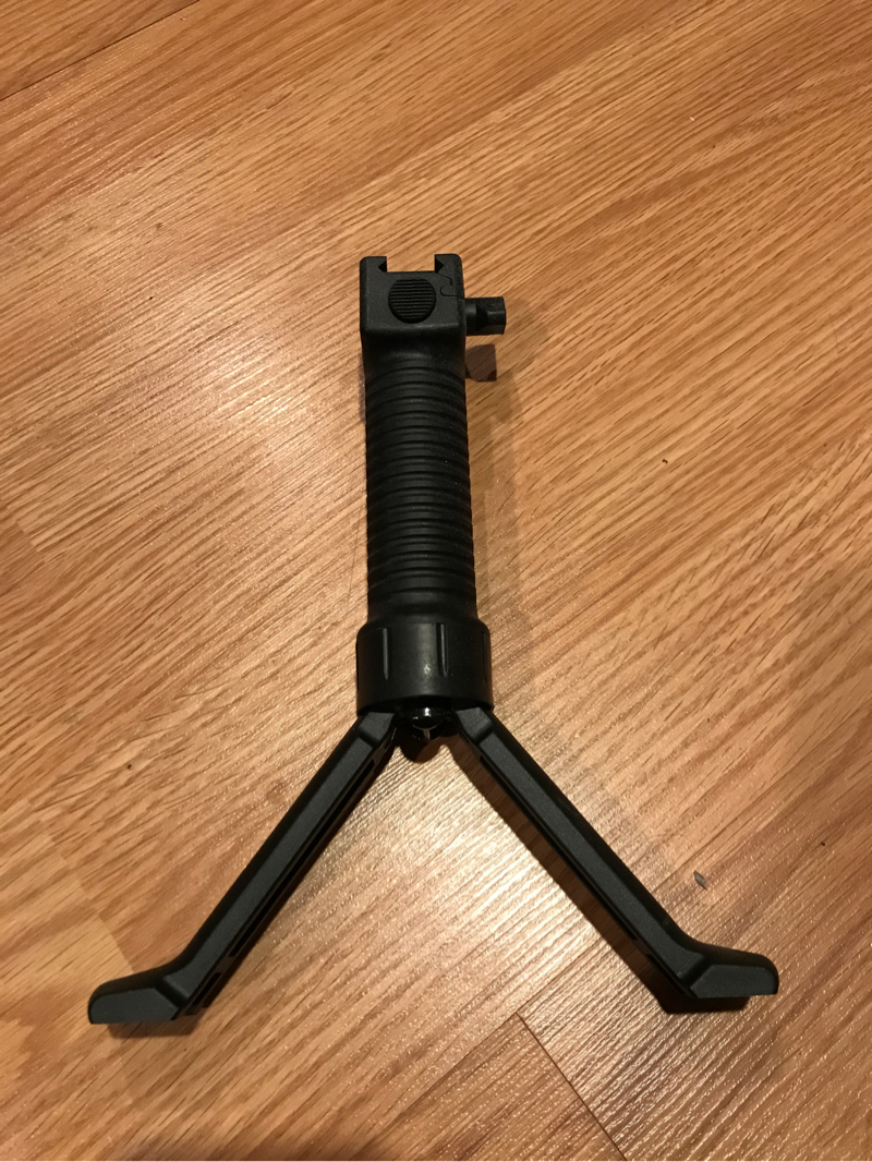 This is a real G.P.S. Grip pod system made by the grip pod company. The bipod deploys at the touch of a button and retracts with a simple push. Great for mk46 without bipods, or dmr's etc.