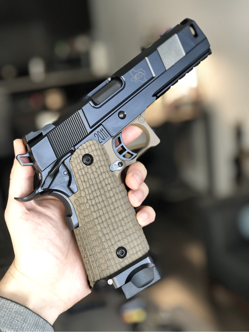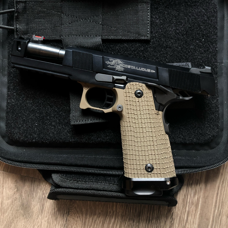 13). Alpha Airsoft Custom STI Costa Grip (Cerakote Sand)