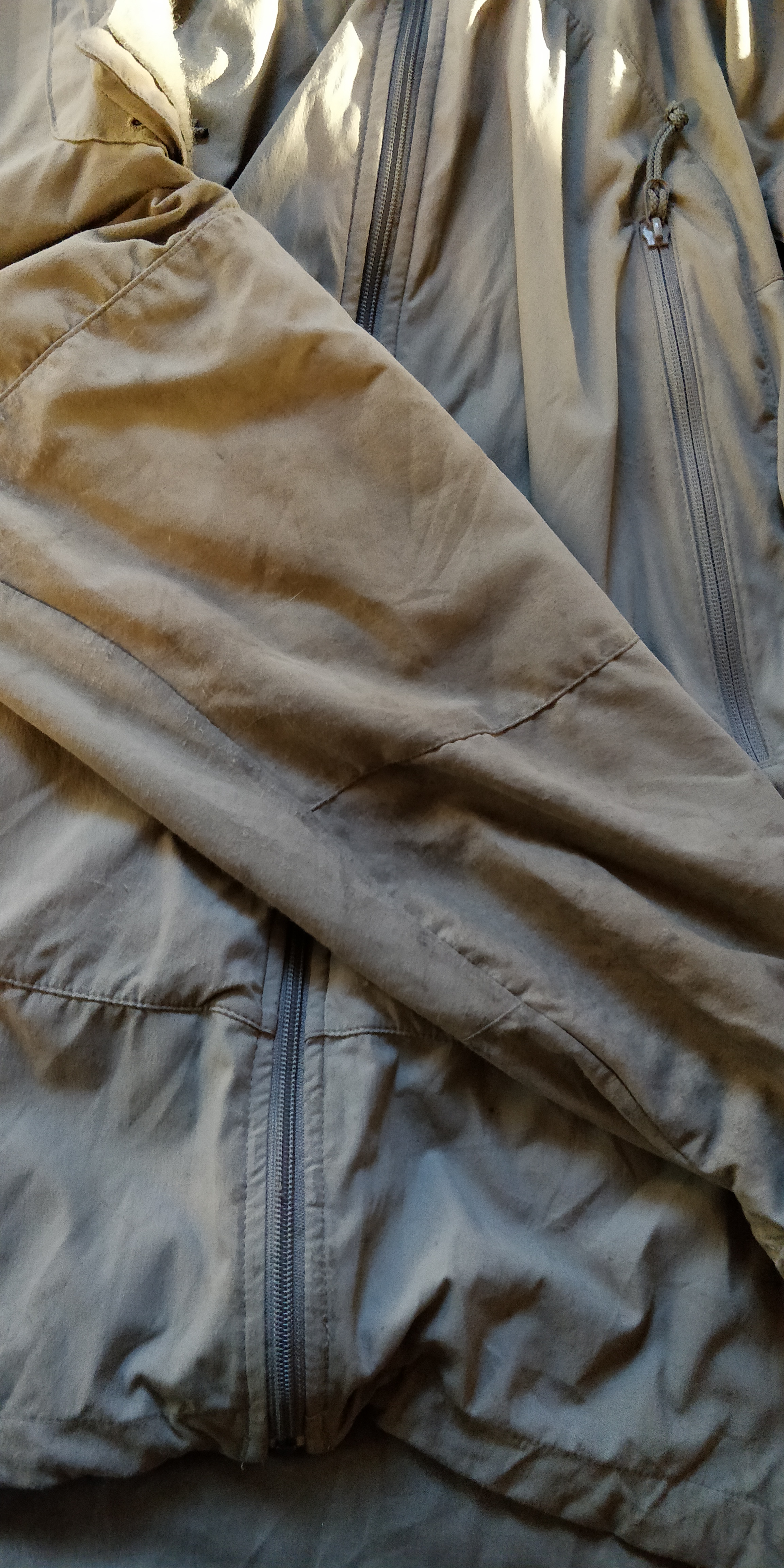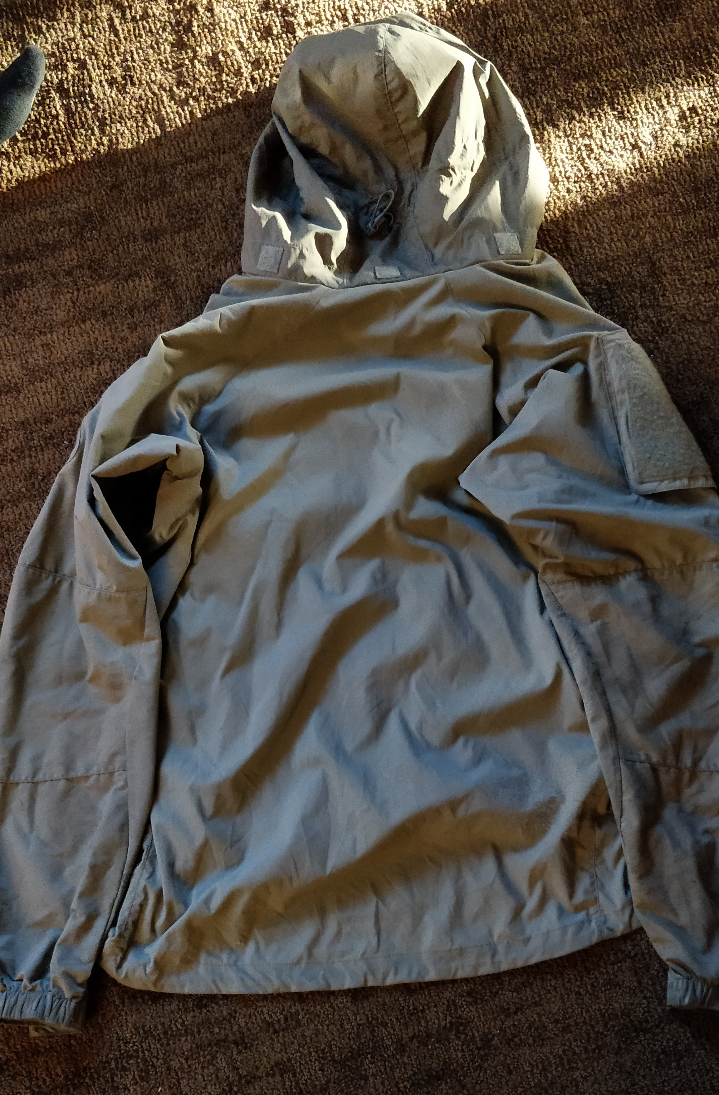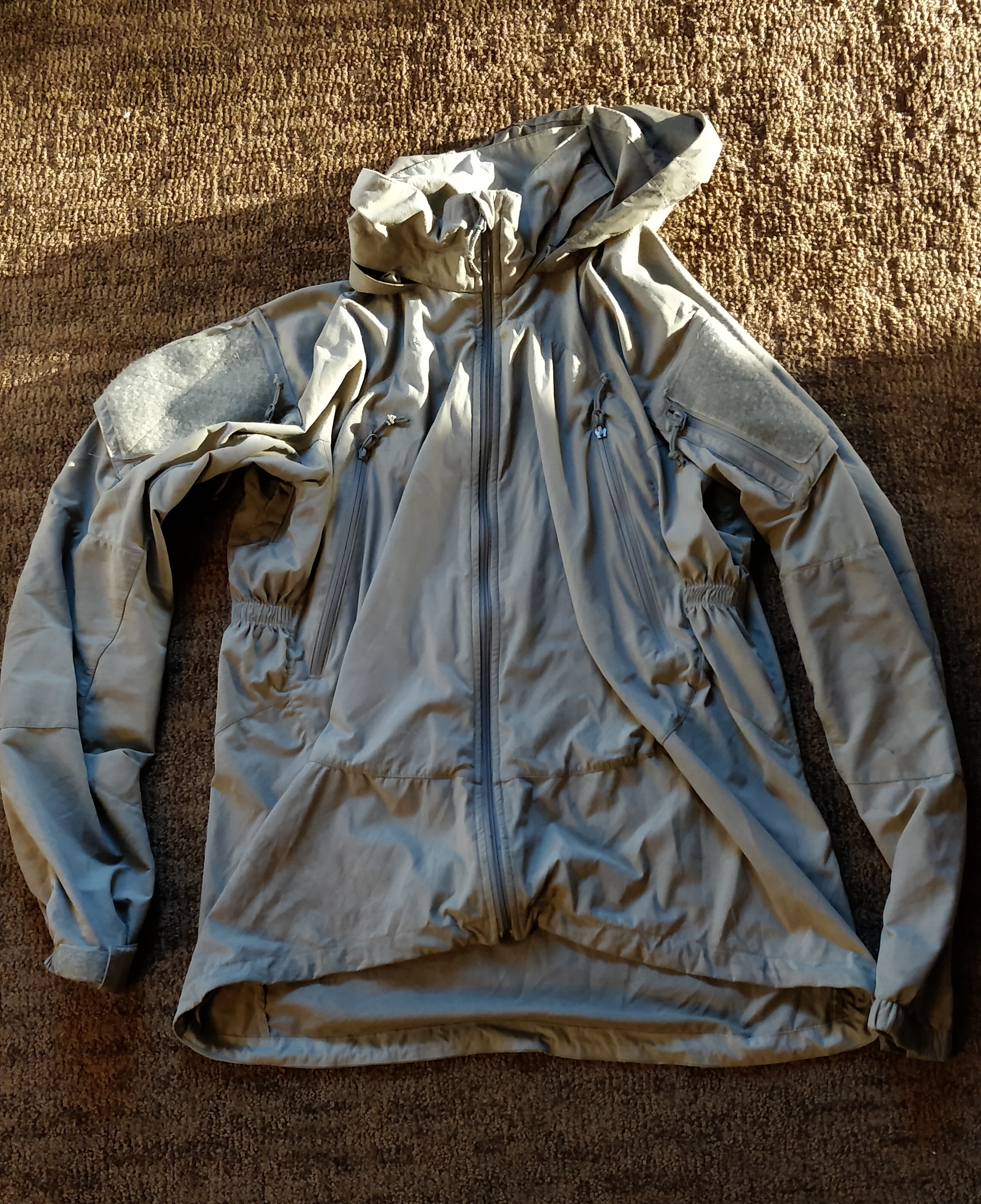 Well used but still good condition Patagonia PCU jacket. Has staining and wear as shown in photos. I got this with some other kit from Ft Bragg and wore it as a rain jacket a handful of times. Size is M/L