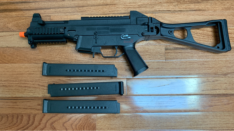 Works great. Missing stock release button. I’m in the process of designing one to 3D print and will update the post once I do. Comes with 9.6v stick battery and 3 mid caps.