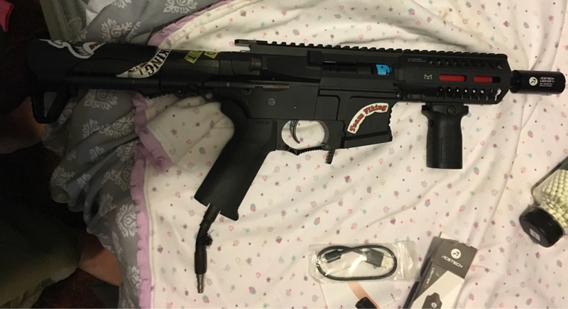 I have a really mean ARP 9 this thing catches everyone’s eye when I use it at the fields. It has a V12 hpa with binary trigger set up. The v12 has an upgraded red poppet and nozzle also put an S2 lightning banjo on it. The other parts are a Pro win Hop up and promethius tight bore barrel. Updated Prometheus bucking as well. I am also including a lighter S tracer. Will also come with three 120rd mid caps and two 60rd mid caps. I am including a ninja regulator and line and a tippman tank. This is a complete package just load it up with you favorite bbs and some air and you are ready to go. This is a complete setup. Shoots lasers trust me not much else can be upgraded on this bad boy. Might consider non airsoft trades.