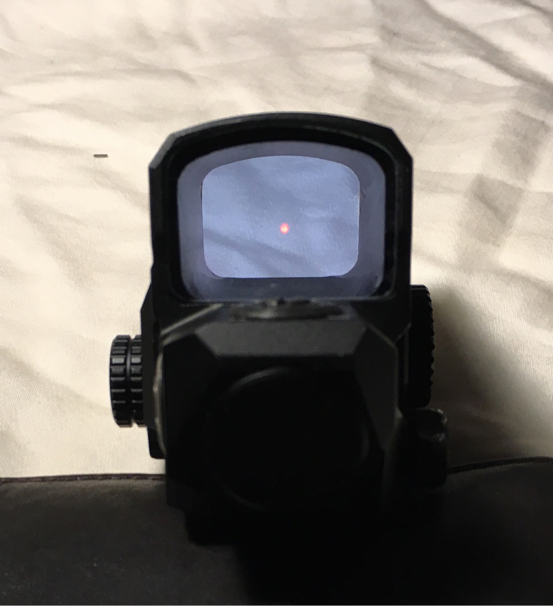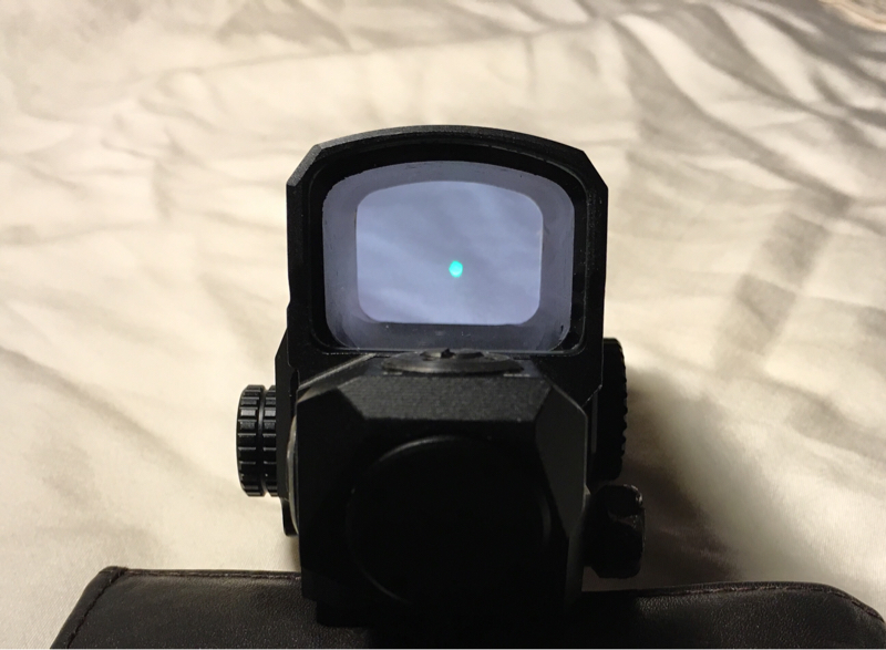 Comes with accurate trades, the reticule can change from green to red and takes one CR-123a battery.