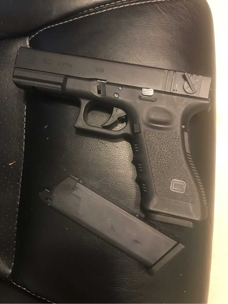 Can’t find the box to it and can’t remember the brand. Its metal and looks incredible. It’s been a while since I’ve used it. Comes with extra mag and holster. $90 shipped. Never had any problems with it and has shot maybe 7 mags total. Great condition but will not come with any original boxes, booklets etc.