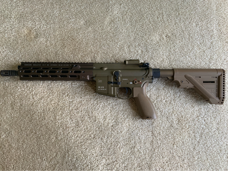 Only used in a couple games. Has a prowin hopup unit, g&g green bucking, and km tn barrel. Shoots really well. Also can’t forget about the tm delta rail. Expect to pay around $150 just for the rail. $490 shipped.