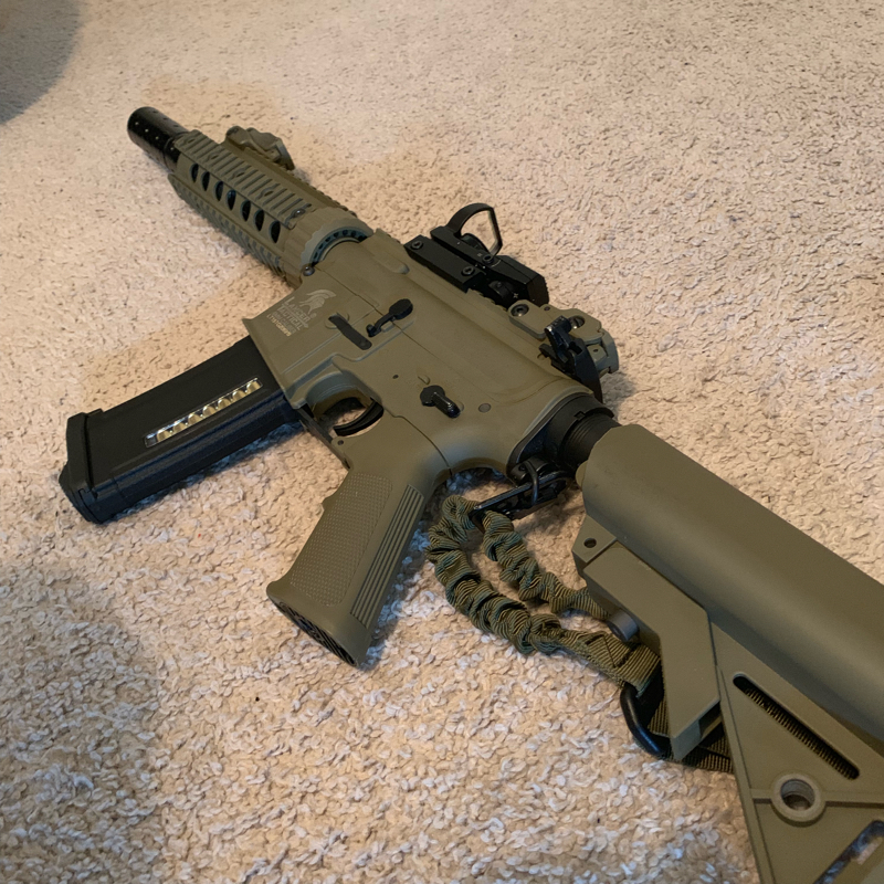 I spray painted the suppressor black, could use a bit of sanding for a cleaner look. The handguard got an ever so slight amount of black overspray, but I like the rugged look. More pictures and shooting video available upon request.