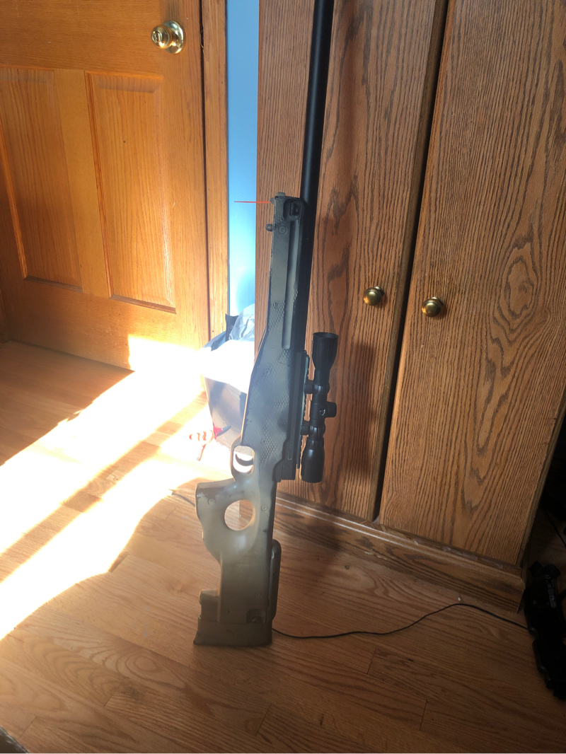 WELL L96 Comes With Scope Two Mages. Condition is used.Has some scratches on the barrel.shoots around 480 to 500fps with .20.bought it form someone tried sniping didn’t like it.one mage is wired it sometimes does not feed.It will come in two parts to ship easier