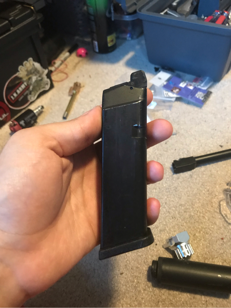 Either Bell or Phoenix, I forget which. It worked well in my Bell G17, but not so well in my ground up G17 so it may not have the perfect fit in every glock. Doesn't leak and comes with a WE baseplate. Sale is final so make sure it's going to work with your gun before messaging me.