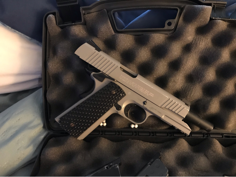 Had this for awhile but never really used it. Comes with 2 CO2 mags. One has a very small pressure leak but stops leaking after a few shots. Will ship in case.