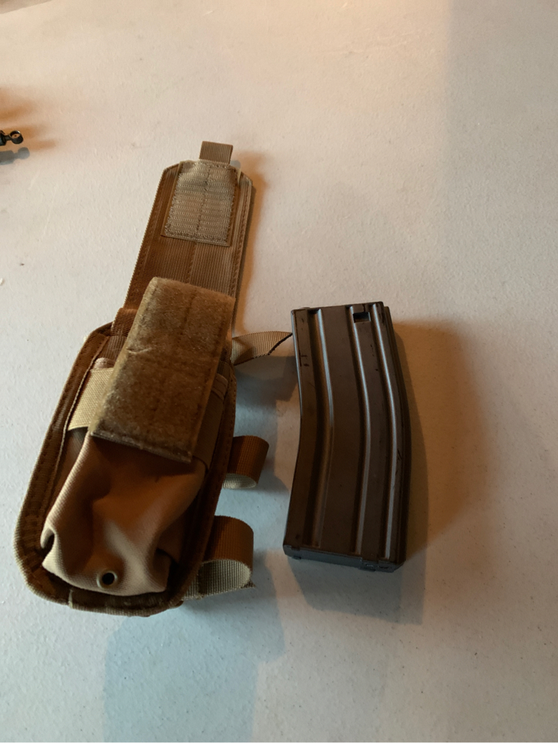 Price is shipped. I have a never used condor stock mag holder. I am including a mid cap with it. The holder can be attached to the gun in a few different ways and has Velcro so you can attach it to gear as well.