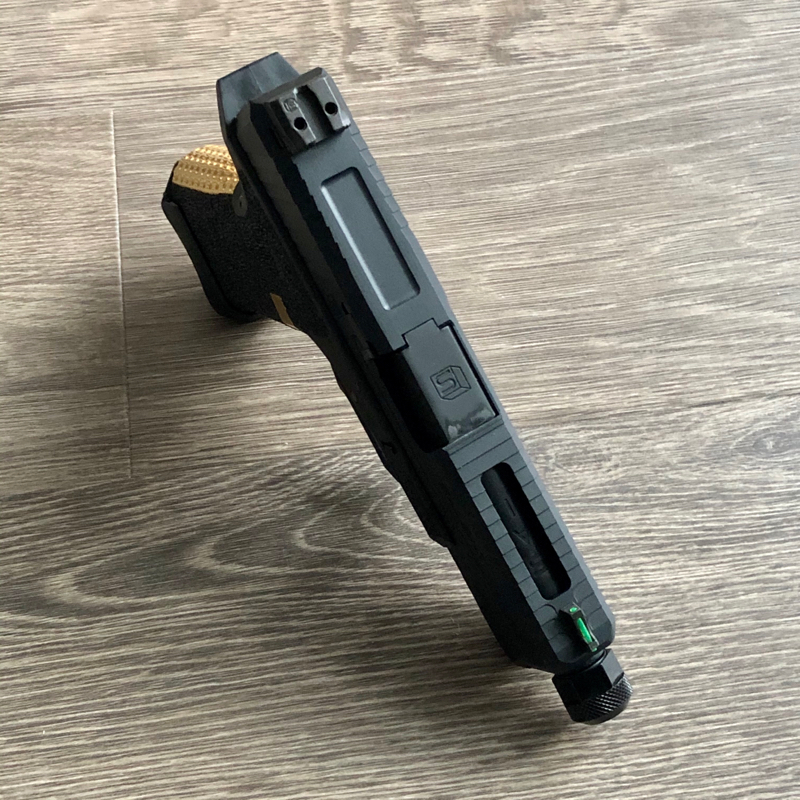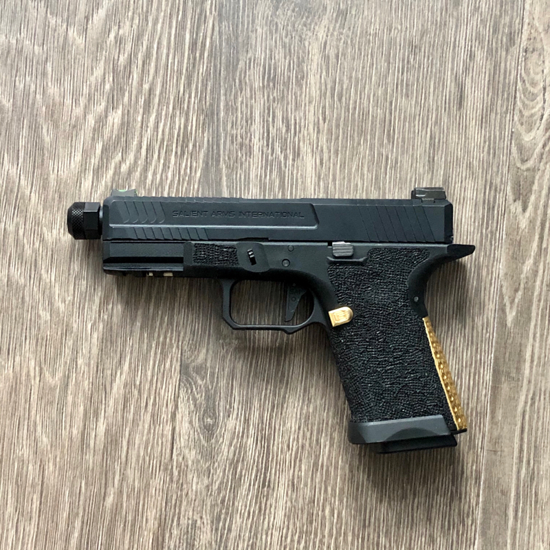 This is the EMG SAI BLU-C green gas version. The original gas mag leaking gas so a TM g19 mag will be included, which is much better than the original one.