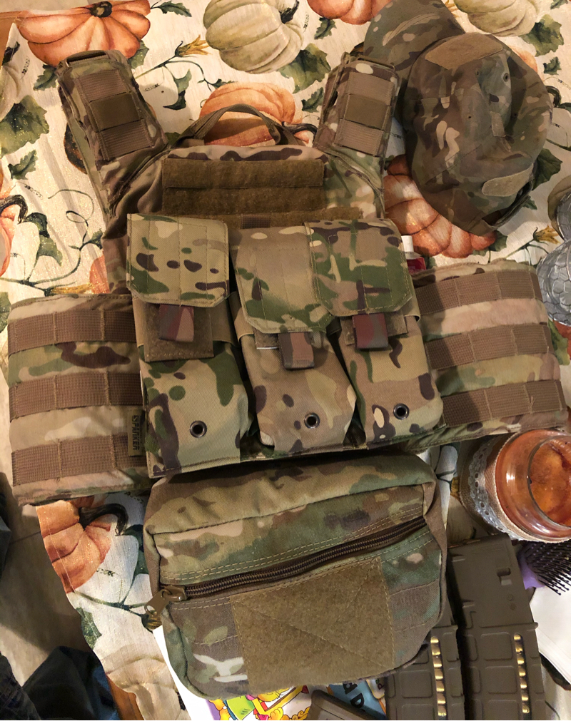 Multicam shellback tactical plate carrier, dangler, and 6 mag pouch