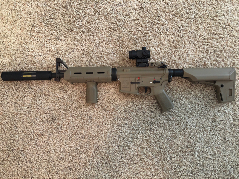 This is a custom built up discontinued Magpul M4. All of the internals have been switched for upgraded parts.