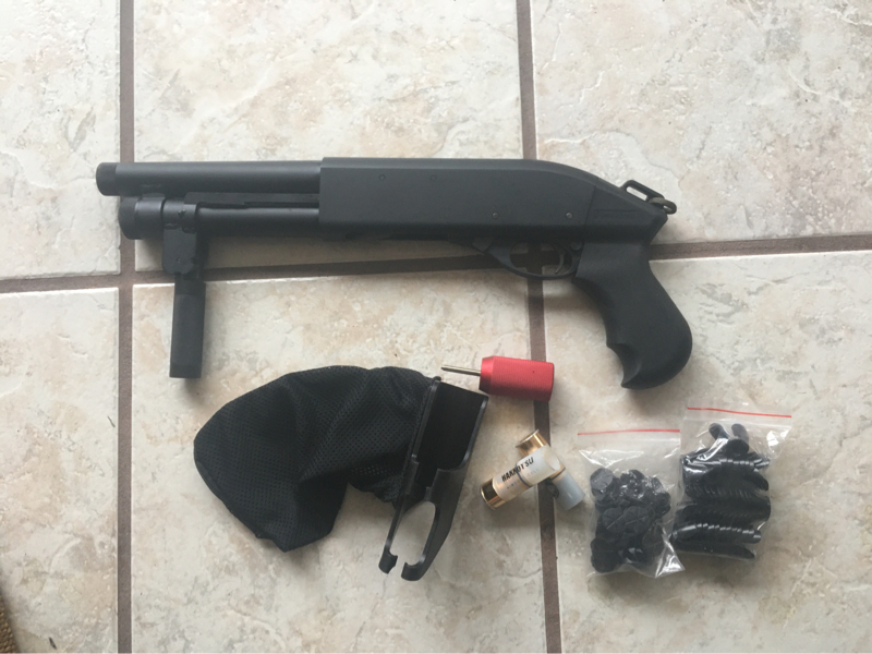 Never fielded. Only did some backyard plinking. No more co2 to use with. Added some paracord to make a bigger sling hole. (Can be easily taken off if needed)