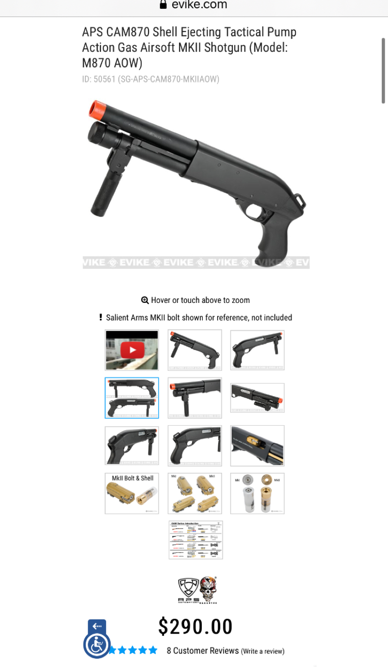 APS CAM870 Shell Ejecting Tactical Pump Action Gas Airsoft MKII Shotgun (Model: M870 AOW)