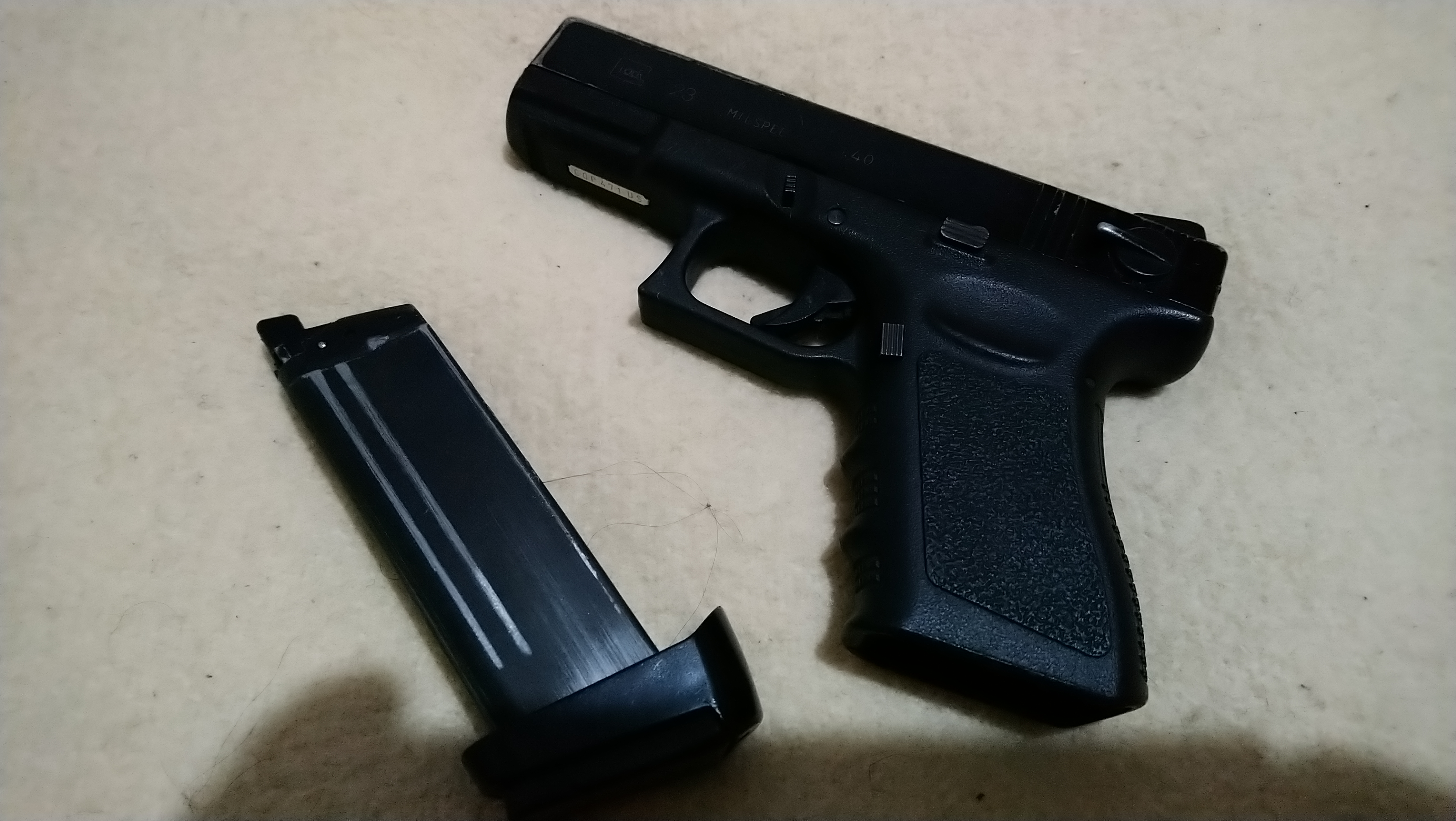 Pistola Glock 23F, mag sin fugas, semi y full auto OK. Replica dispara, luego de 4 o 5 bbs bota todo el gas. Se debe reparar, yo me retire y ya no juego.