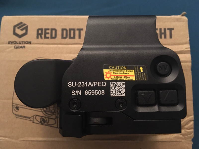 Clearest lens of any EXPS3 replica, little to no parallax, holds zero perfectly, clear and bright reticle, full markings, aluminum housing with anodized black finish, and adjustable rail mount. In like new condition. Can be used with magnifiers. Adjustable brightness settings and adjustable for windage and elevation. Battery included. Buyer pays small shipping fee.