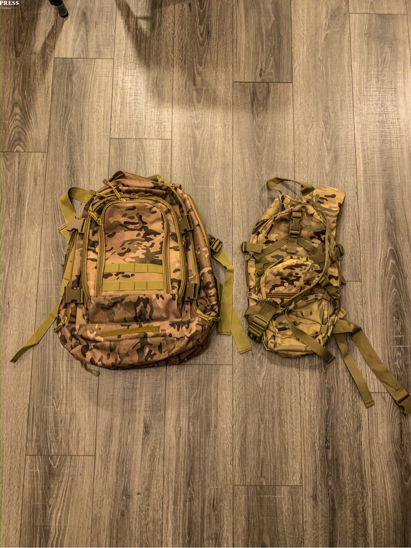 Large backpack - $20 Hydration backpack - $15