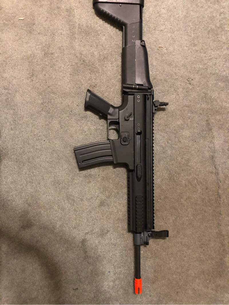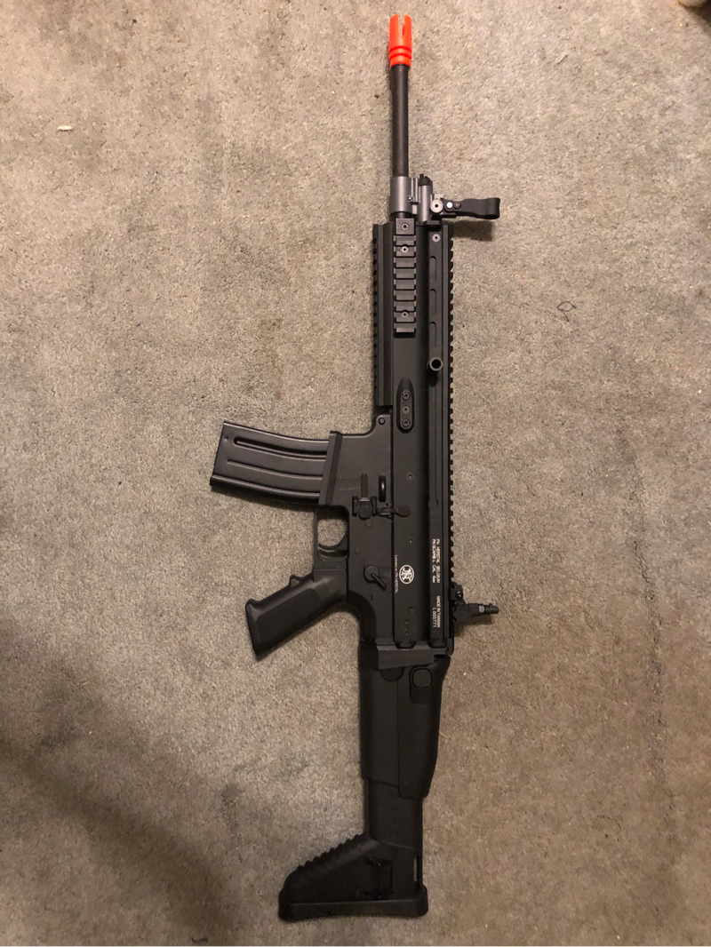 FN Herstal Scar Light AEG. Foldable/Retractable Stock. Flip-up sights. Comes with one Hi-Cap Magazine. Price is shipping included.
