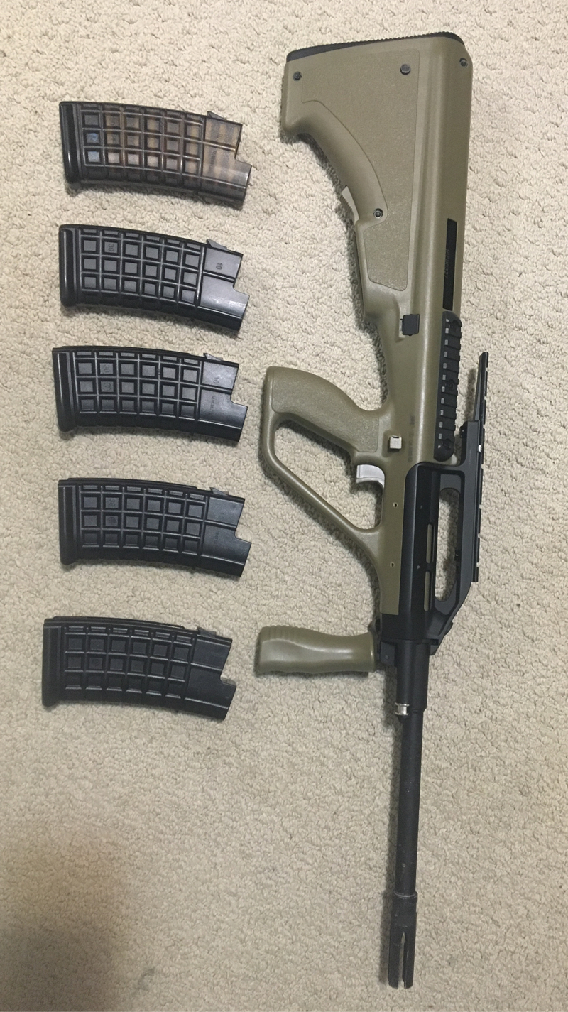 Looking to sell my ASG Proline AUG A2. Super fun to use, performs well, and has proven itself reliable. Only thing I’ve done is change the connector to Deans. Chrono’s about 380 fps with 0.20’s. Comes with five mags (2 hi-cap, 3 mid-cap). It hurts to part with this gun, but I need to make some room in my collection. Asking $200. Shipping is available from Langley, BC.