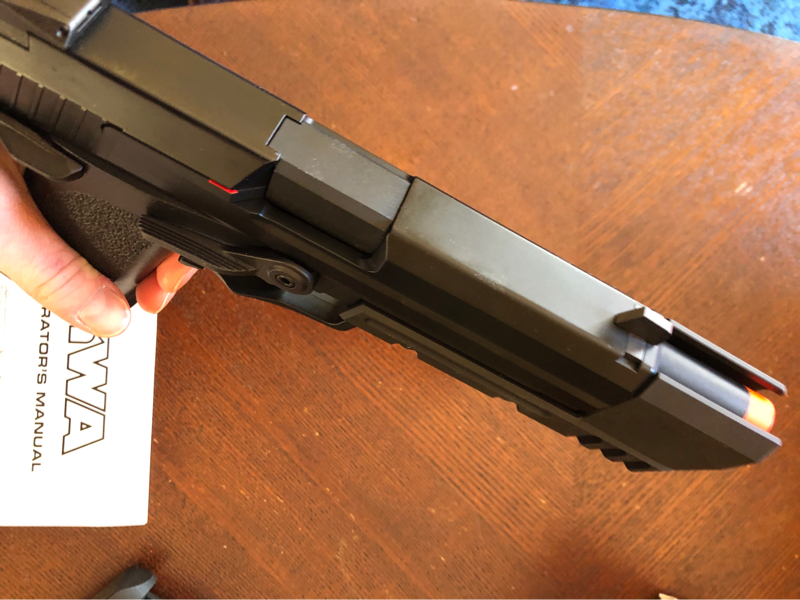 Basically brand new; no marks or blemishes. Fired less than 30 times. Orange tip installed.
