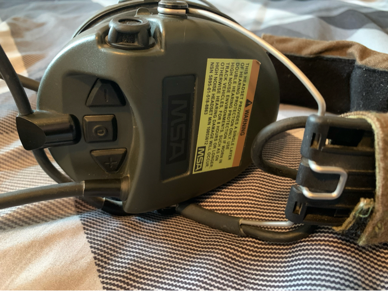 Perfectly working MSA Sordins with dual comms. I got these to mount to a helmet but I ultimately decided to go with a cheaper set that has cheaper helmet mounts. I also don’t run comms enough to justify having a dual comm setup.