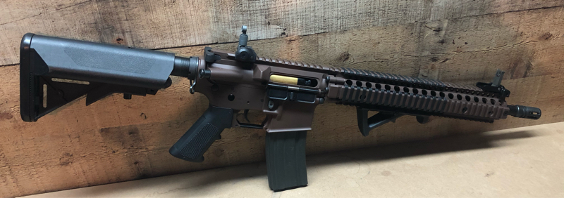 Selling my custom EMG licensed Daniel defense MK18, this is Cerakoted “Mil-spec brown” comes with everything shown, internally it has a