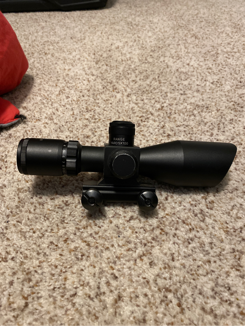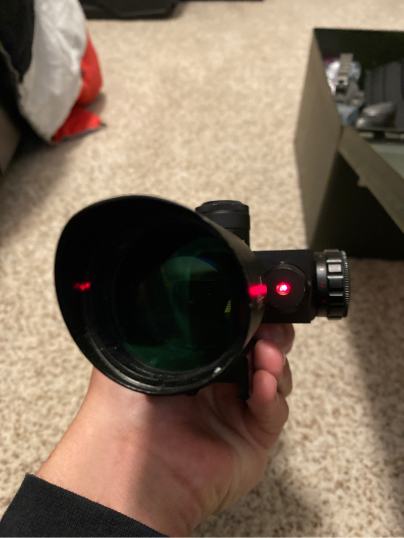The scope has never been used, it’s normally $100 but I’m letting it go for cheap. It can change colors on the reticle, and has a laser attachment as well. It’s fully adjustable and has a variable zoom on it. Plz ask if you’ve got questions!