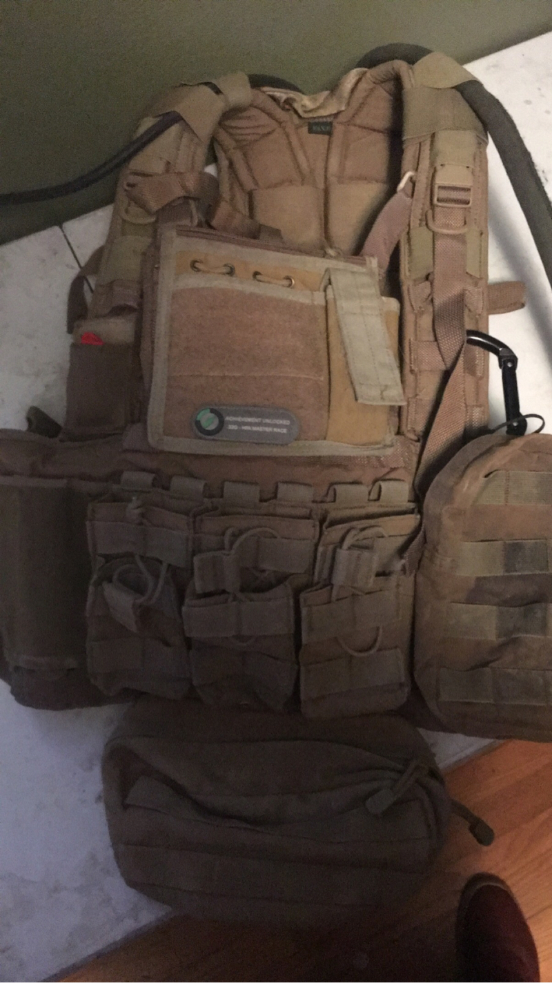 Pantac chest rig with back, this is the original where front and back were sold separate. As of now it is all attached, it also comes with all pouches. It’s got double m4 blue force gear, 6 mags double stack, and a utility. Just offer