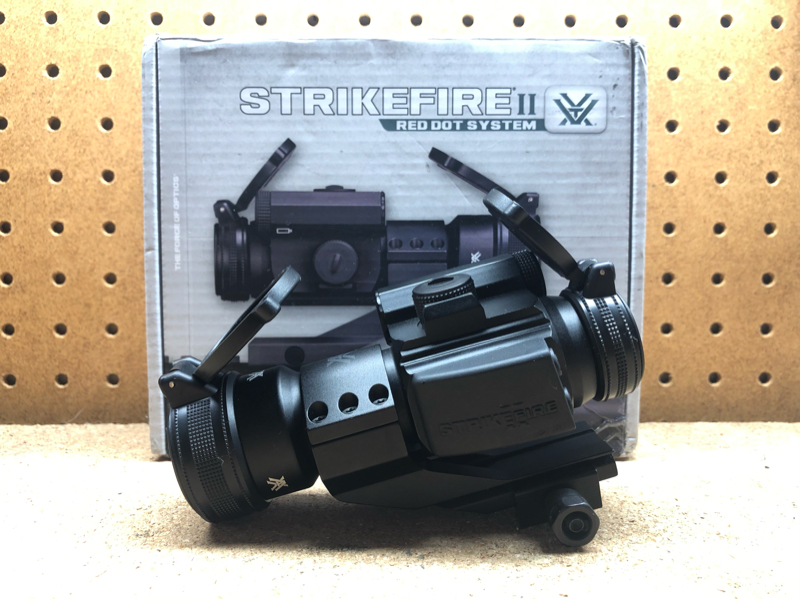 Vortex Strikefire II Red/Green Dot Sight in excellent condition, practically brand new with little to no use. This is the version with both red and green dots and as you can see by the photos it’s very crisp and a very high quality optic. Comes with the optic, mount, original box and paperwork, and battery. This is real steel and a great choice over cheap china airsoft toys that are likely to break and not hold zero over time. If you have any questions feel free to ask! No trades, thanks.