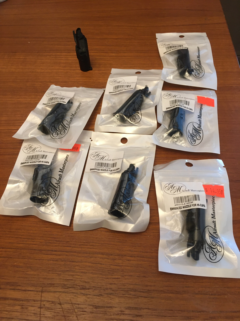 Brand new in packaging Airsoft Masterpiece Enhanced Loading Nozzle for TM HI CAPA. Best loading nozzle in the game. These are sold out everywhere even in Hong Kong! I have 10 currently , price is firm unless you decide to buy additional hi Capa parts.