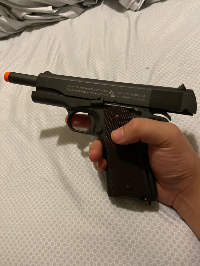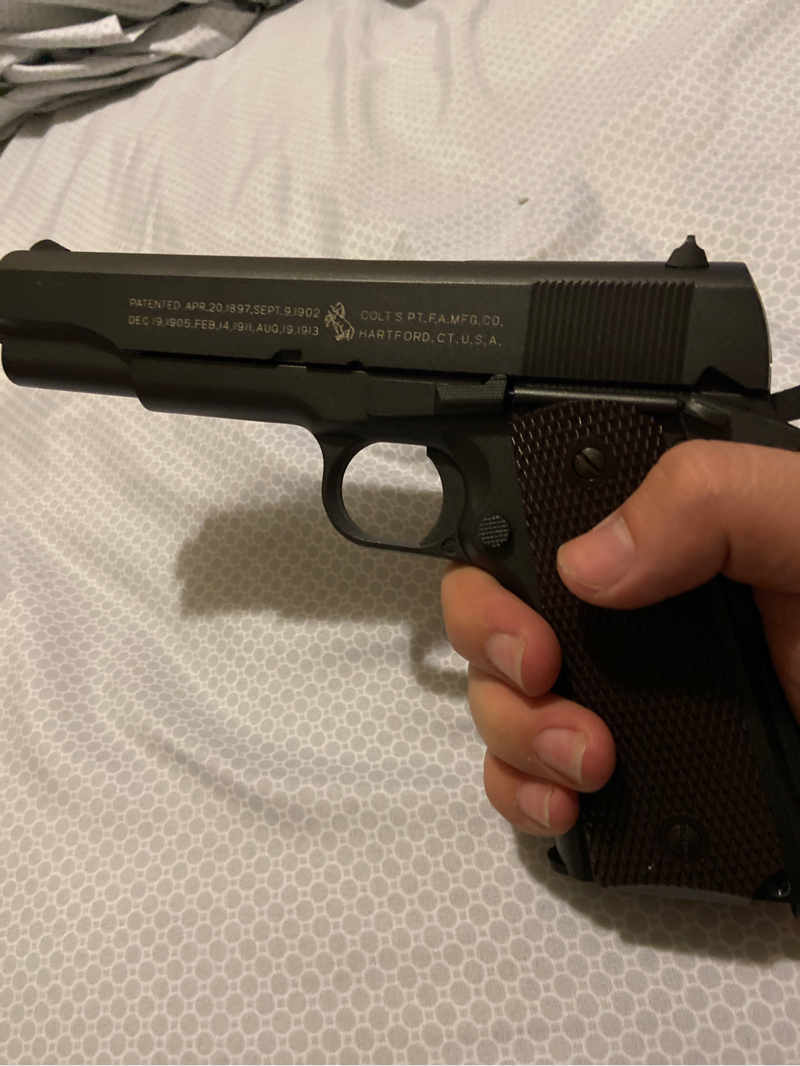 Awesome side arm, lightly shot around in my backyard, never fielded at an actual game. Almost brand new condition. The pistol is full metal and full blowback, kicks like a horse but is also great with gas usage. It feels great in the hand and honestly don’t want to sell it, but I just never use it! So it needs a great home.