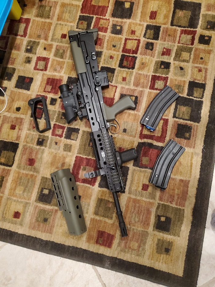 Selling a fantastic and cool piece of kit! WE L85 with 2 non leaky mags! Been upgraded with a Maple Leaf autobot bucking as well as Wii tech brass nub. Daniel defense rail and magnifying SUSAT included! Price does not include shipping.