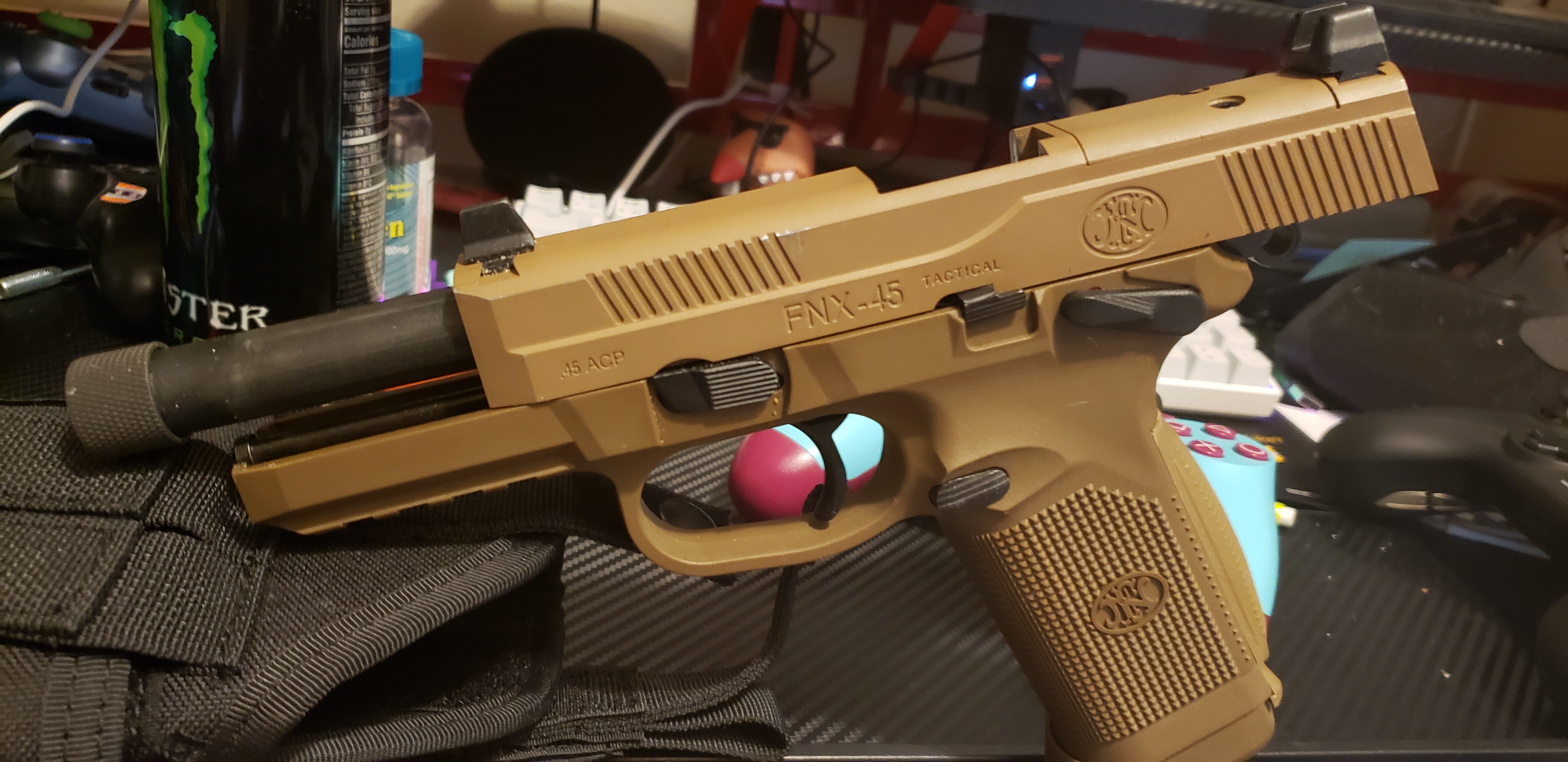 Fn fnx45 tactical with holster 2 mags and a suppressor, willing to t**** hit me looking for gbbr