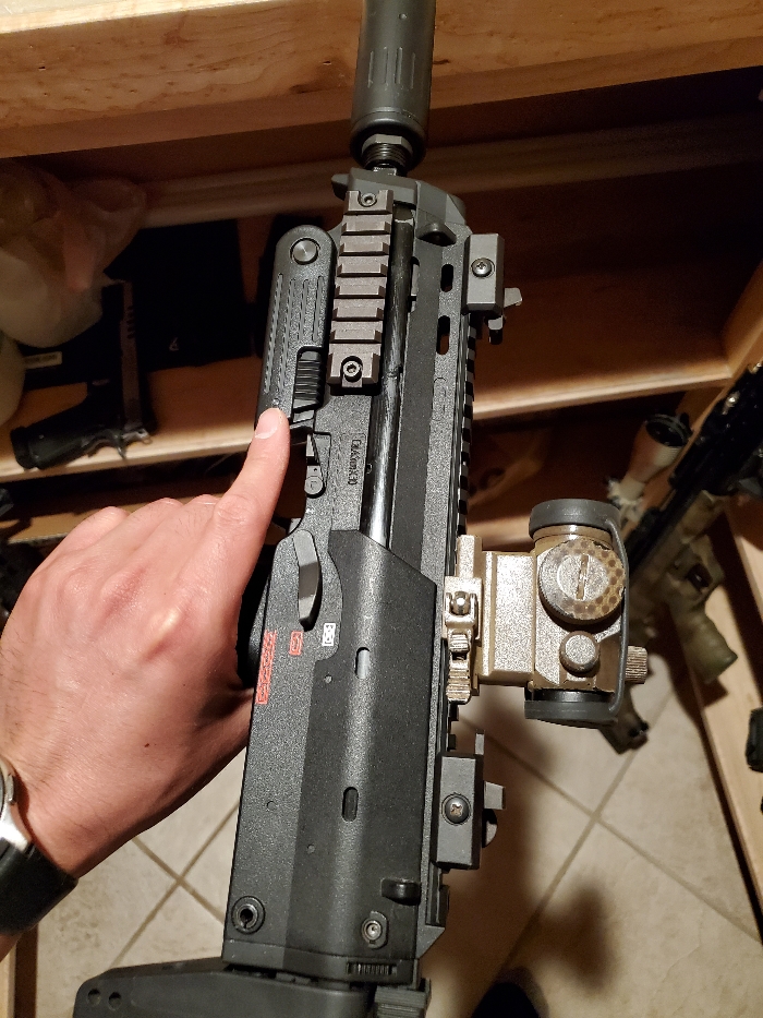 KWA MP7, small crack. Pending trade Comes with reaps bucking, cqb nozzle, and laylax 14mm adapter. Stock dremeled to be a 3 position stock.