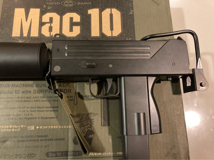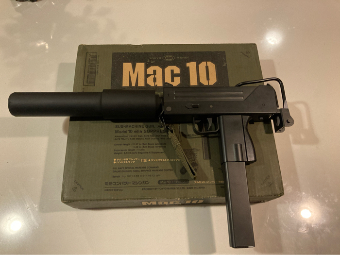 Tokyo Marui mac 10 complete set in original box in perfect shape. Battery holds charge, shoots lasers and is dead quiet due to the foam filled suppressor. I will split shipping