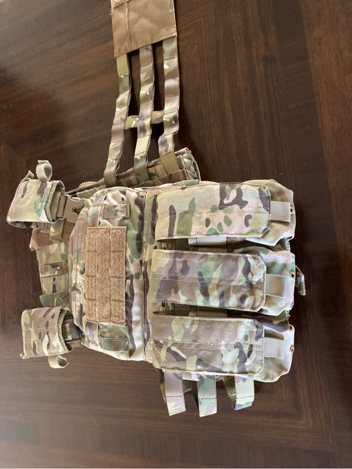 Crye precision licensed large plate carrier comes with a 3 band cummerbund instead of a harness, condor triple m4 mag pouch, crye precision m4 flap, and crye precision shoulder pads. Also comes with fake plates