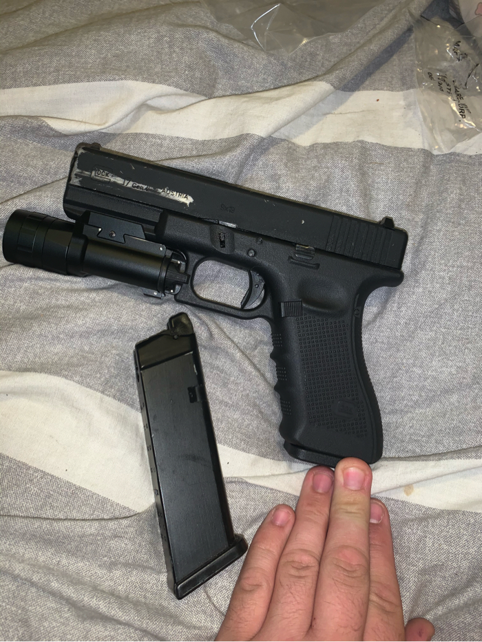 Glock works fine has some where and tear come with two mag one works fine other leaks also come with light I would say about 300 lumens price is shipped no trades