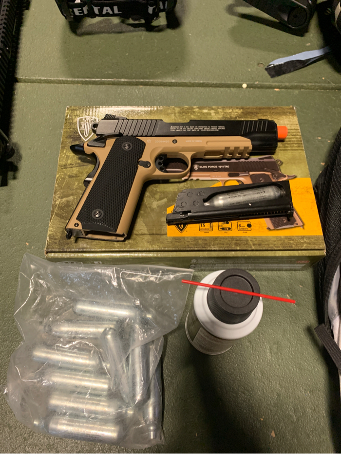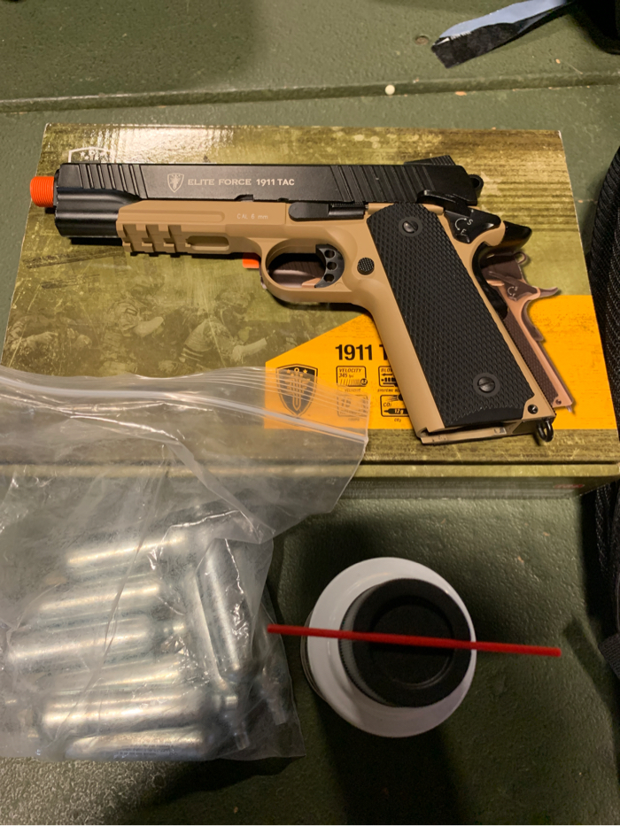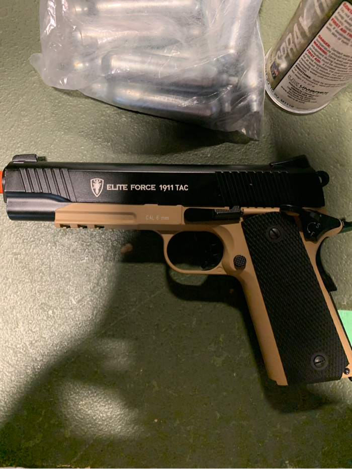 ELITE FORCE 1911 tac with 9 co2 cans and silicon spray oil.Very good condition and works well.We can talk about price!