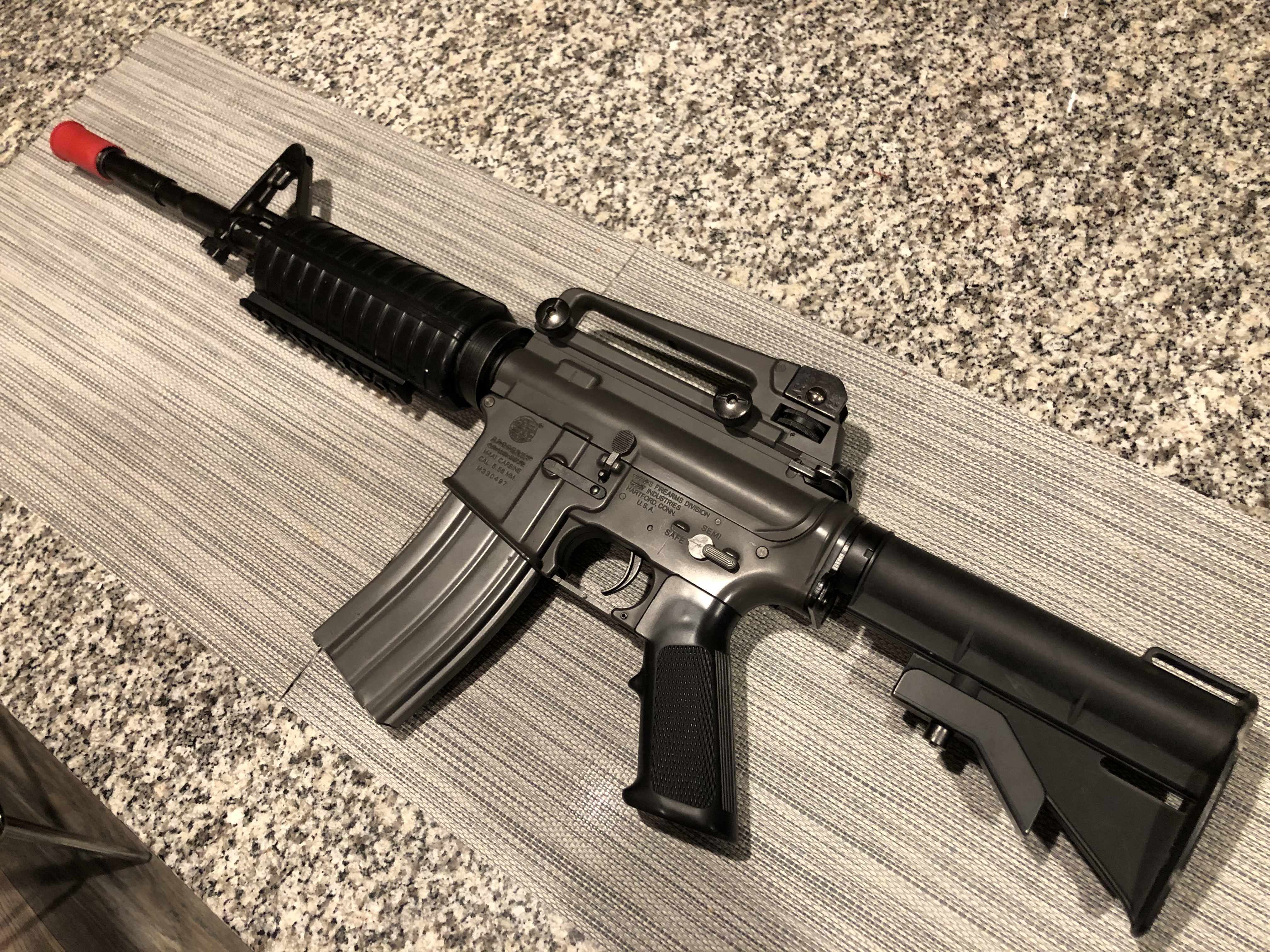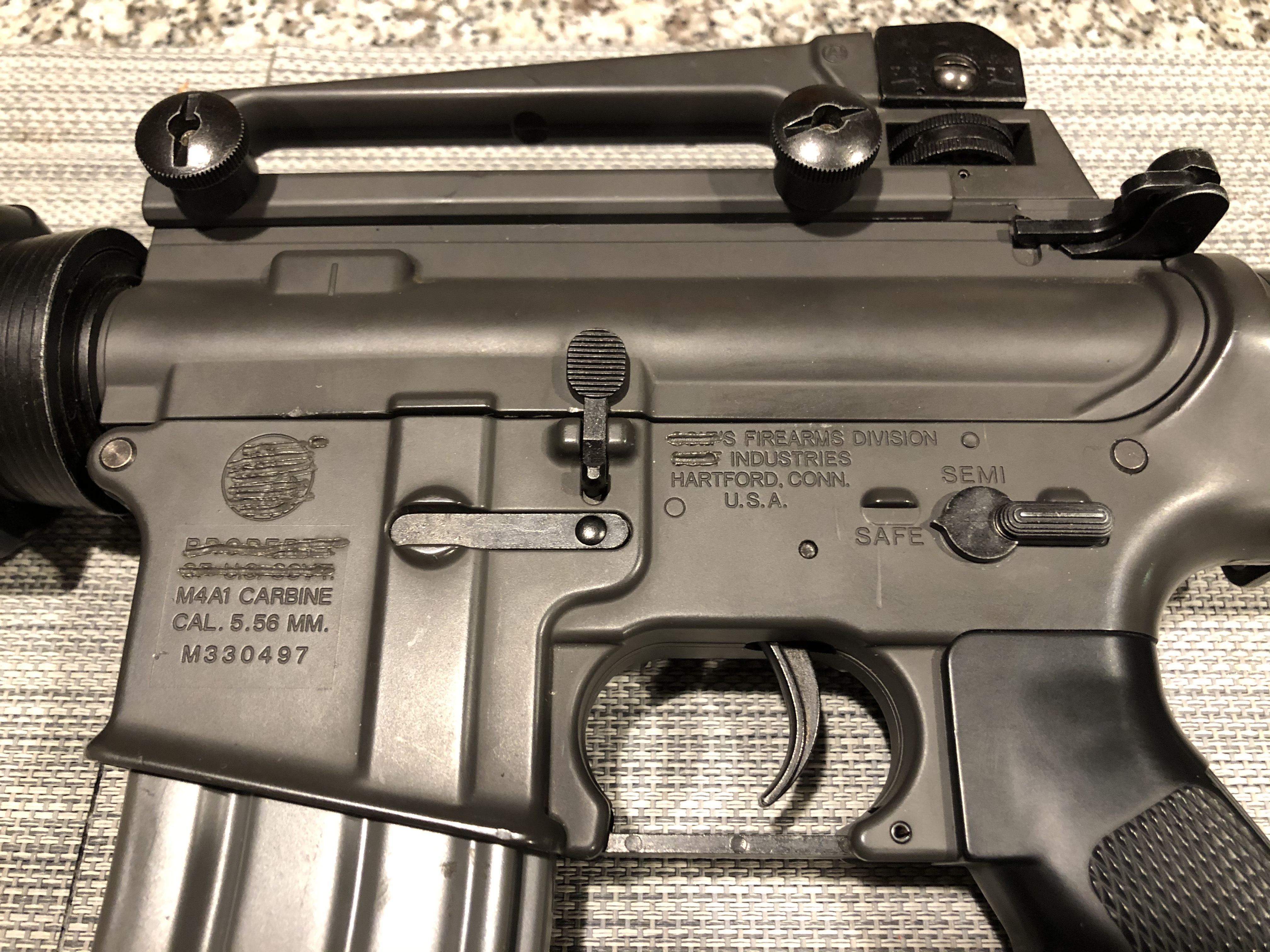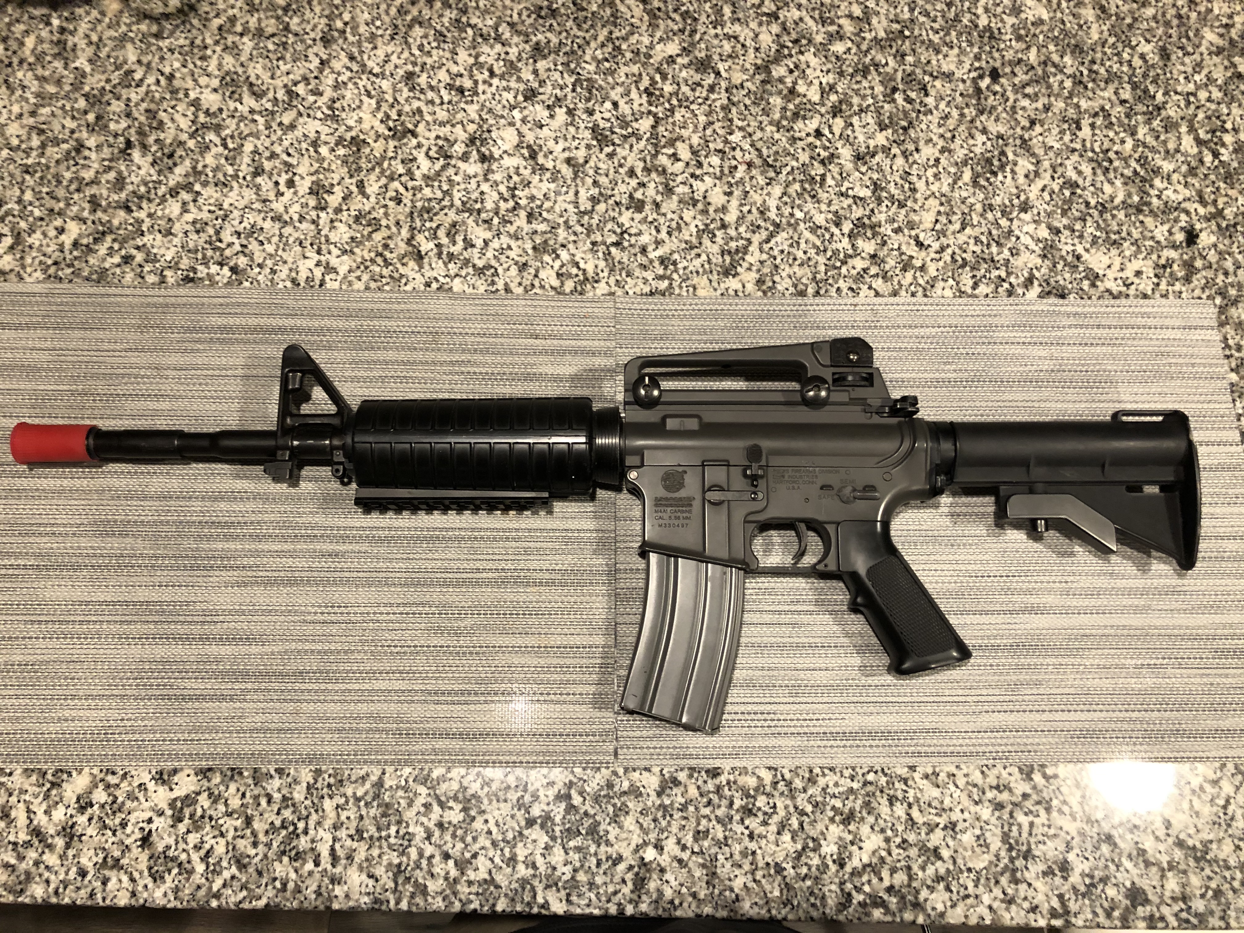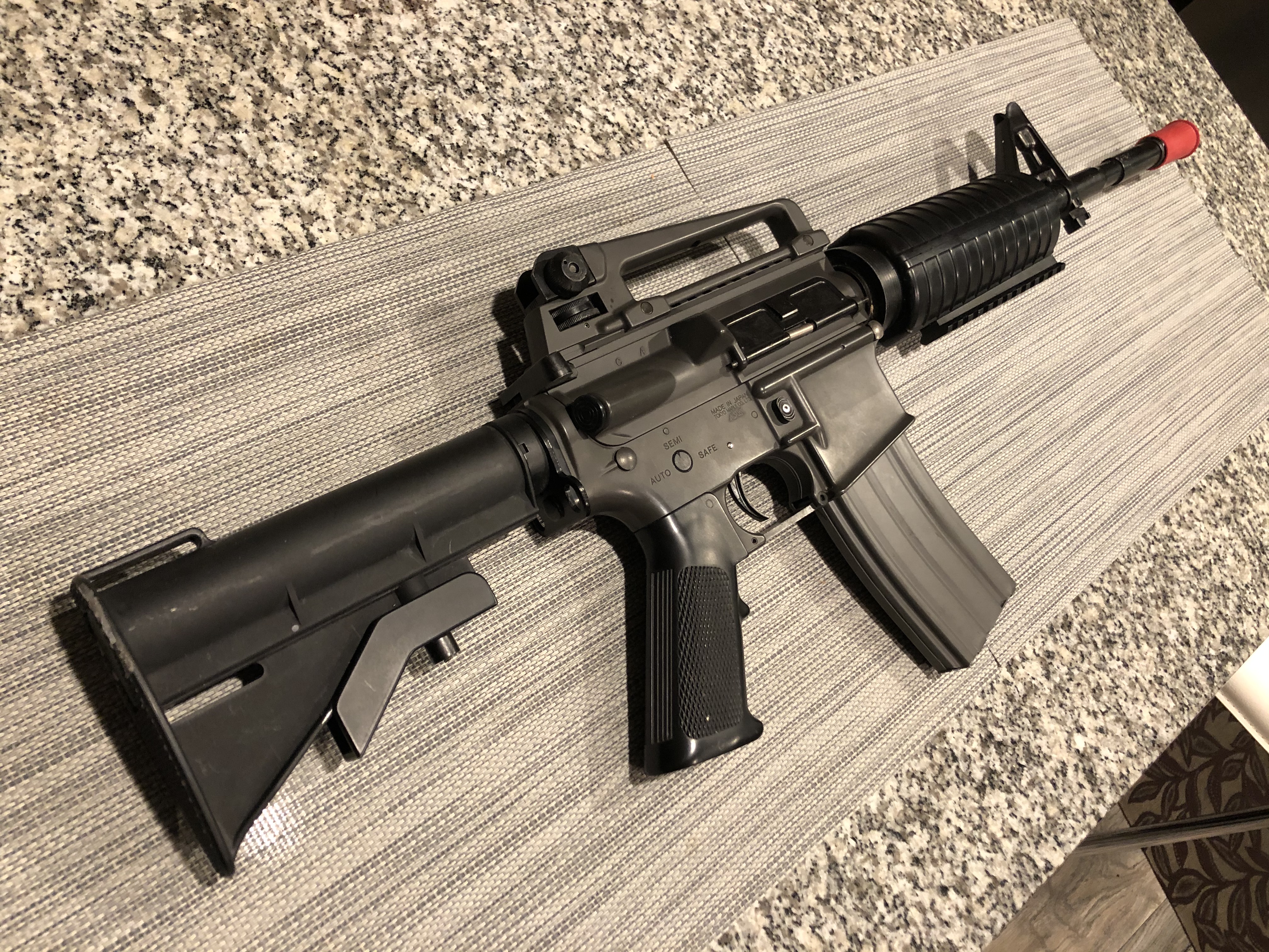 Selling a Rare/Unique TM M4. This gun was imported and is from 2003-2004 from TM Japan directly. Originally a Colt-Branded gun. Reason it's unique is because the trademarks were "removed" from the factory before importing (see pictures). I've never seen another one like this, although there are a couple forum stories about it online from 2005. Usually, they just tape the markings off like you will see on Glock style pistols. The only thing added to this gun is the bottom rail. Historical Collector Piece. Selling for tuition. Asking $799 shipped. Feel free to offer.