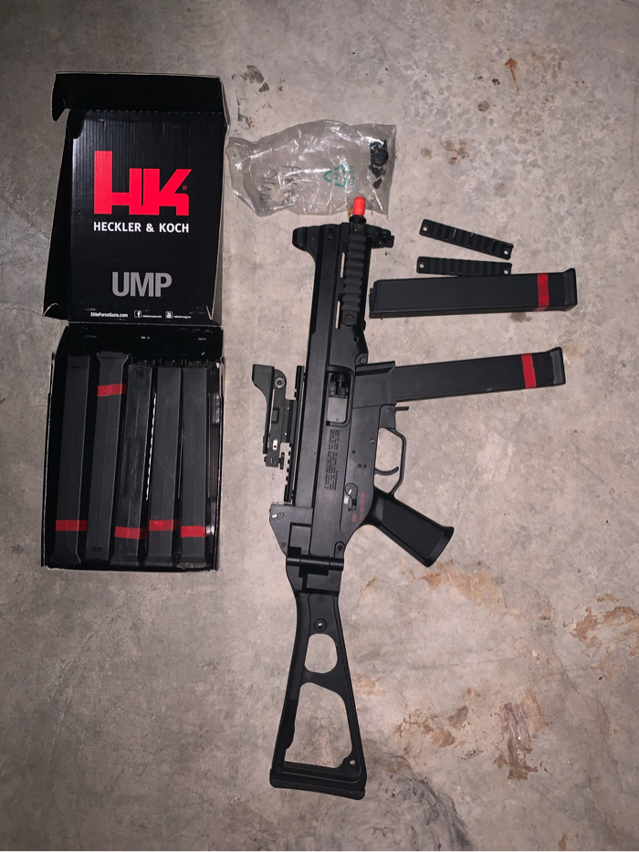 In good condition! Shoots 350FPS with .2 Comes with 7 magazines and a red dot sight!