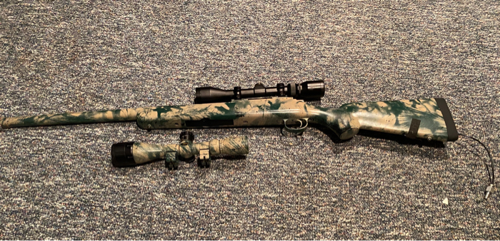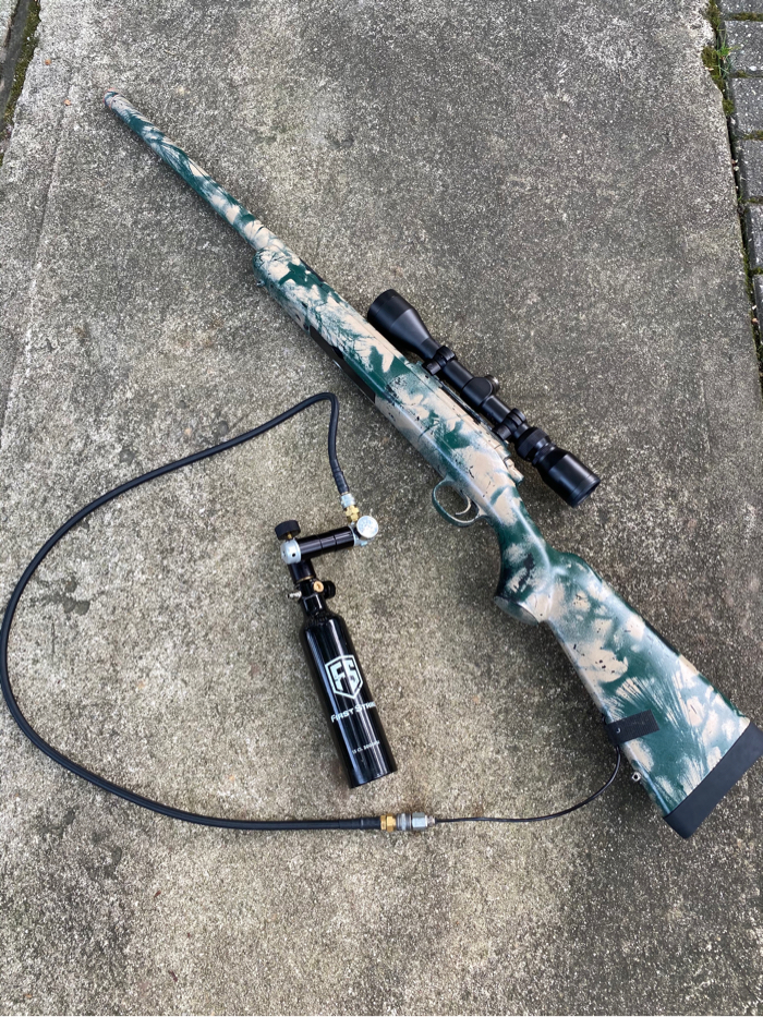 Price is shipped, tracked, and insured! TANK SETUP NOT INCLUDED! NO TRADES! Works perfectly. Shoots laser beams up to 250ft with a stock barrel setup. Comes with two scopes and two mags.
