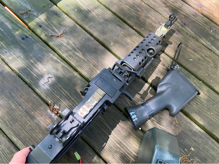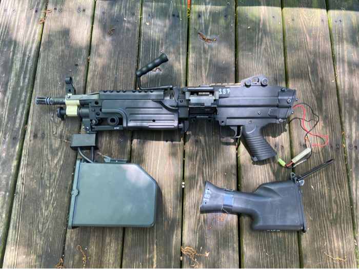 Up for sale is an A&K m249 package for sale. Gun is in used shape but still functions well. Stock is not broken, just detached for shipping. Box mag is sold already